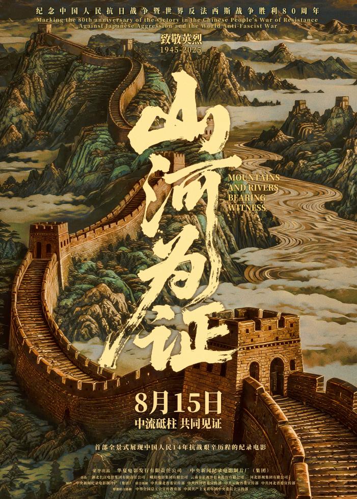 纪录电影《山河为证》将于8月15日全国上映。影片深入挖掘海量影像资料,通过数字修复与艺术创作相结合,全景式展现中国人民14年抗战艰辛历程。