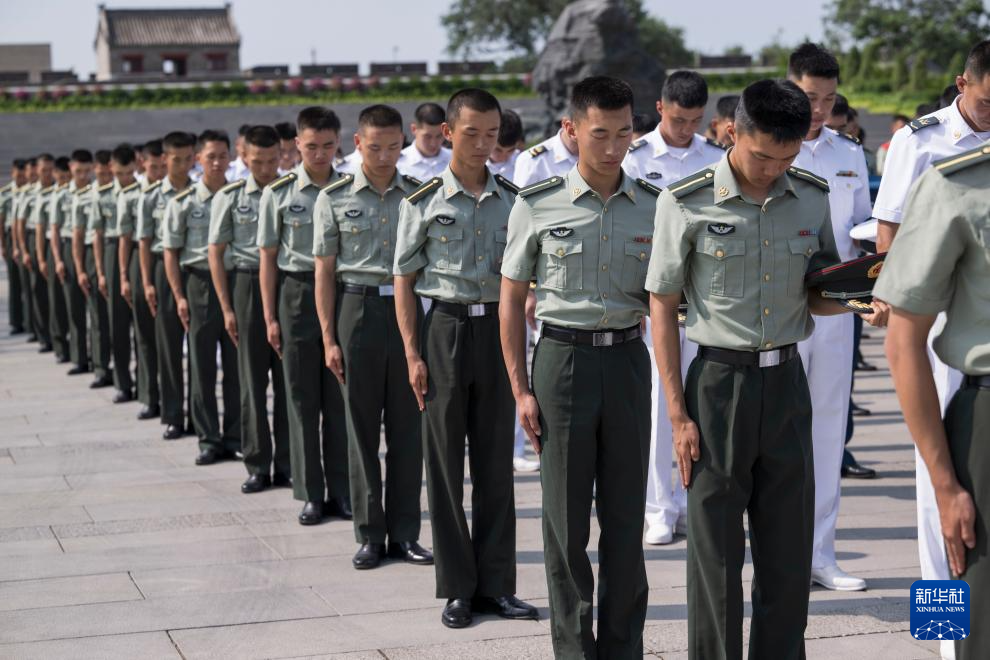 7月7日,部队官兵代表在现场默哀。新华社记者 才扬 摄