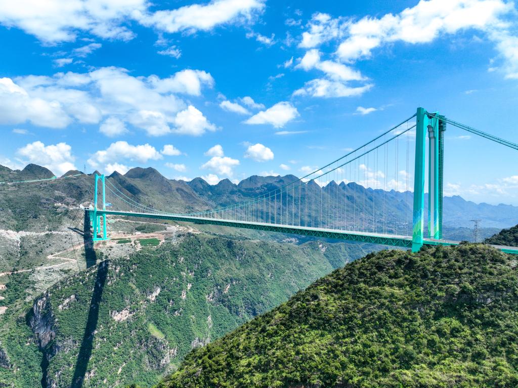 9月28日拍摄的贵州花江峡谷大桥(无人机照片)。新华社记者 欧东衢 摄