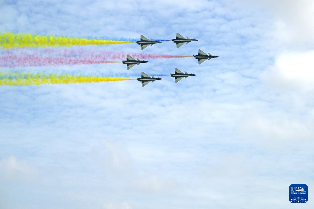 2月4日,中国空军八一飞行表演队在第十届新加坡航展上进行飞行表演。新华社发(邓智炜摄)