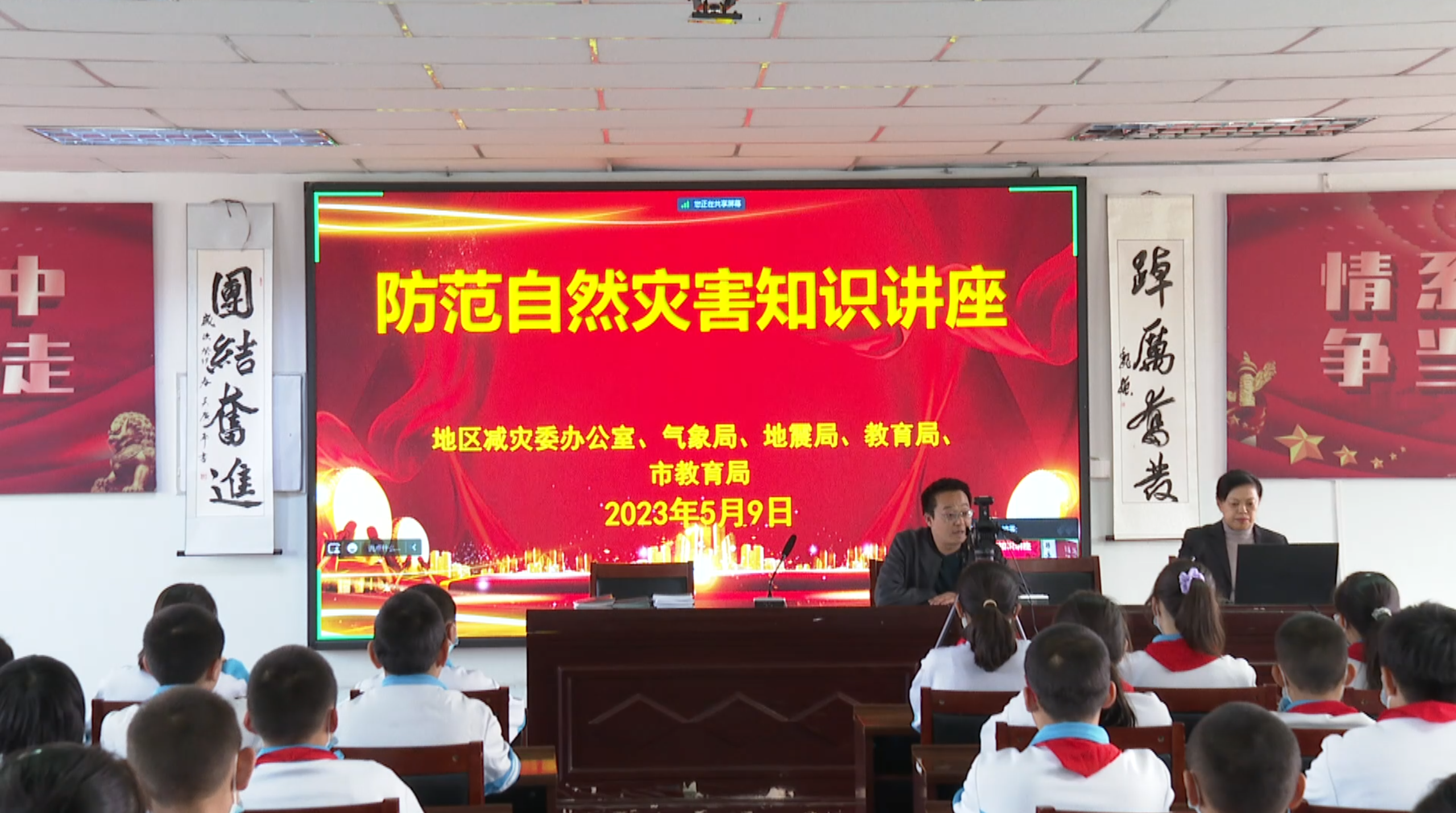 讲座主会场设在阿勒泰市中心小学,来自地区气象局、地震局的专家给全地区中小学师生讲解了气象和地震灾害防范知识,让大家了解气象和地震灾害的种类和特征,并重点讲解了当自然灾害发生时,如何防灾避险、自救互救。