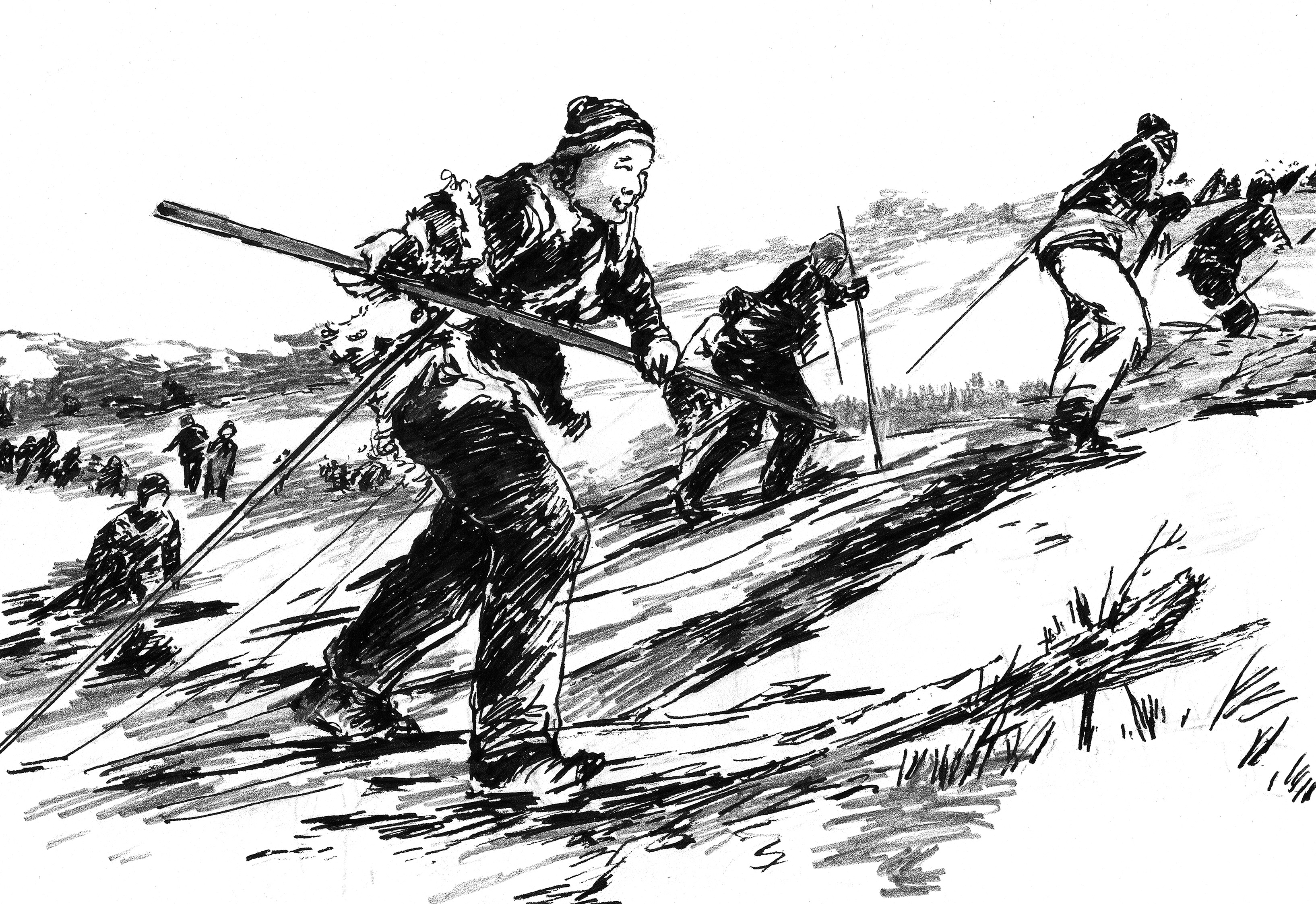 3 这里是世界最古老的滑雪狩猎岩画(距今8000年—10000年)发现地。彼时,滑雪还不是“运动”,而是一项“技能”。人们滑雪的主要目的是狩猎,毛皮滑雪板成为林海雪原里人类追逐猎物的代步工具。