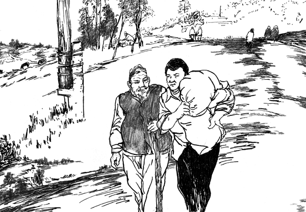 9 王勇不愿意再回矿点,父亲就打算资助路费让他尽快回内地??赏跤氯幢ё爬先?,哭着说道:“我没有家,也没有地方可去。是您救了我,让我当您的儿子吧!”虽然当时的家庭条件也比较困难,但是看到王勇恳切的目光,老人仍毫不犹豫地说道:“好,孩子,跟我回家!”