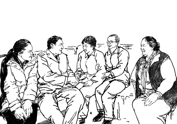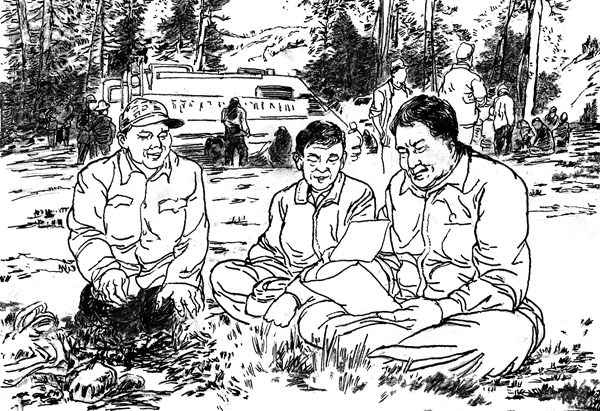 49 马丁别克和退休干部们一起,在夏牧场开展“党的政策进牧区”巡回宣讲,受到牧民们的一致称赞。