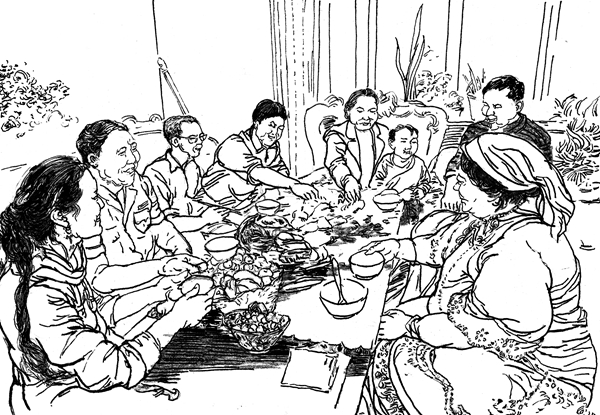23 2012年春节前夕,马丁别克发动全家人连夜包了1500多个饺子,宰了一只大肥羊,与敬老院里的7个民族的67名孤寡老人一起吃了一顿热闹的团圆饭。