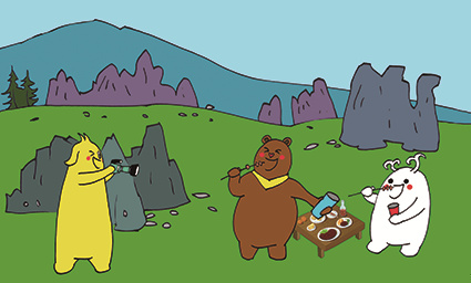 很久以前的某一天,每一片树叶都在沙沙作响,每一朵花都在努力开放……就连阿尔泰山森林里不问世事的猫头鹰,都预感到有什么事情将要发生。突然一团光影出现在森林里,四处跃动,似乎在寻找什么,它找到了最挺拔的白杨,最精神的向日葵。光影幻化出一团褐色。一眨眼,光影消失了,一只可爱的小棕熊正在四处张望,他就是津津。