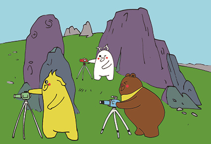 布布站在东边,津津站在西边,小津灵站在南边。