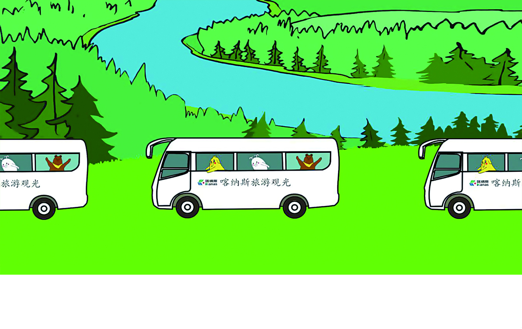 布布、津津和小津灵决定前往喀纳斯湖的深处。