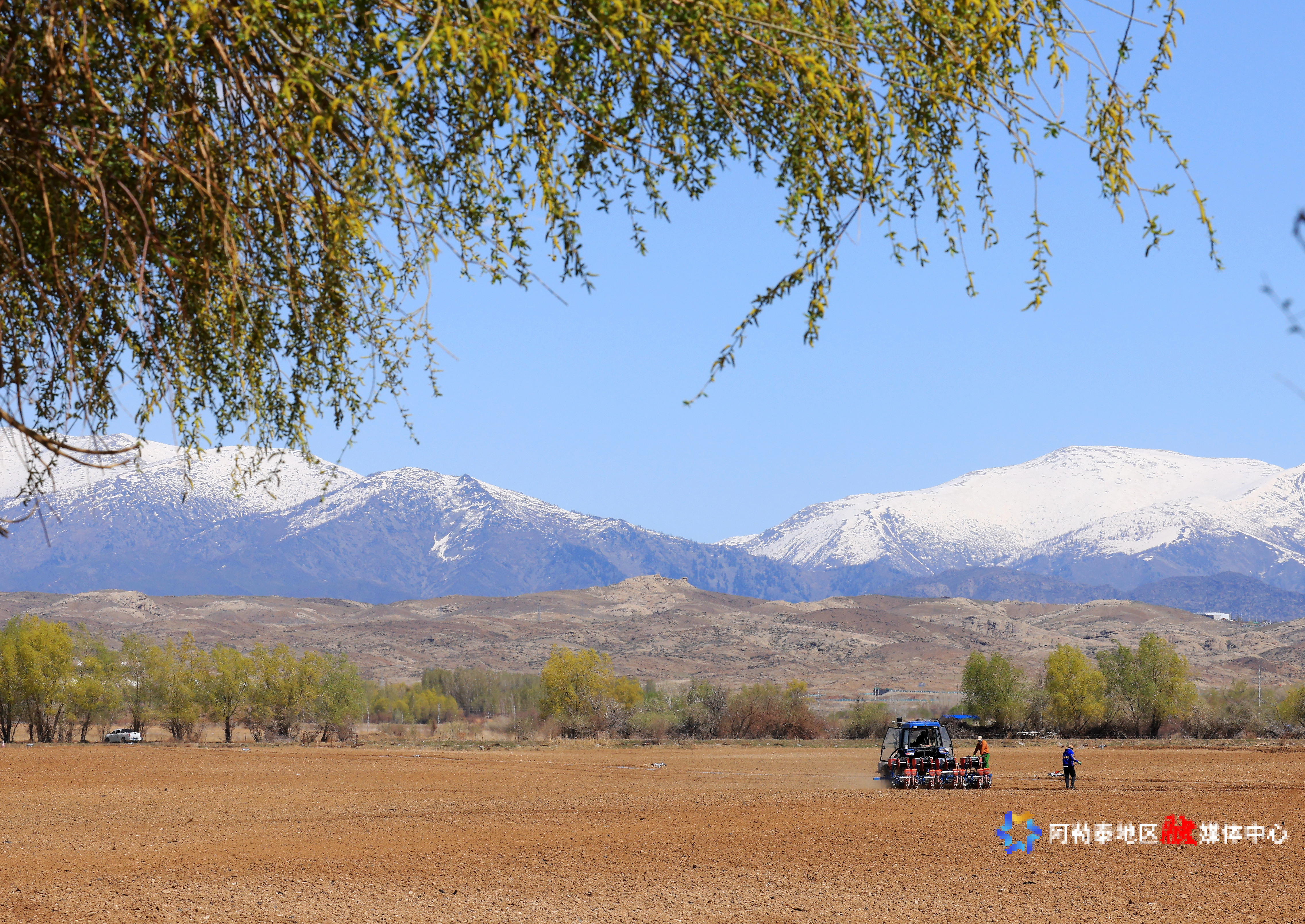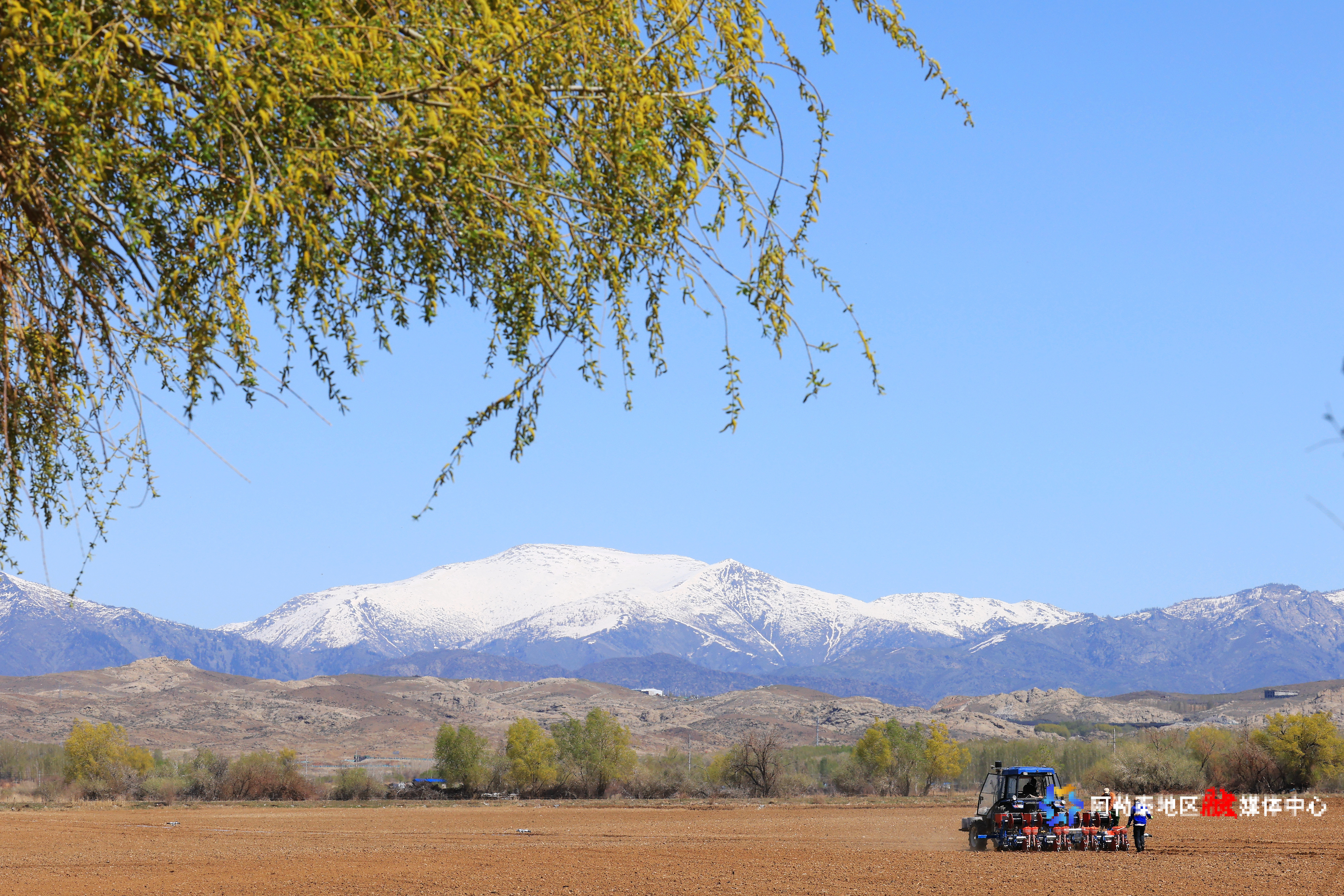 2025年4月27日,在阿勒泰市阿苇滩镇阿苇滩村的农田间进行播种前耙地作业。记者 阿尔达克·拜斯汗 摄