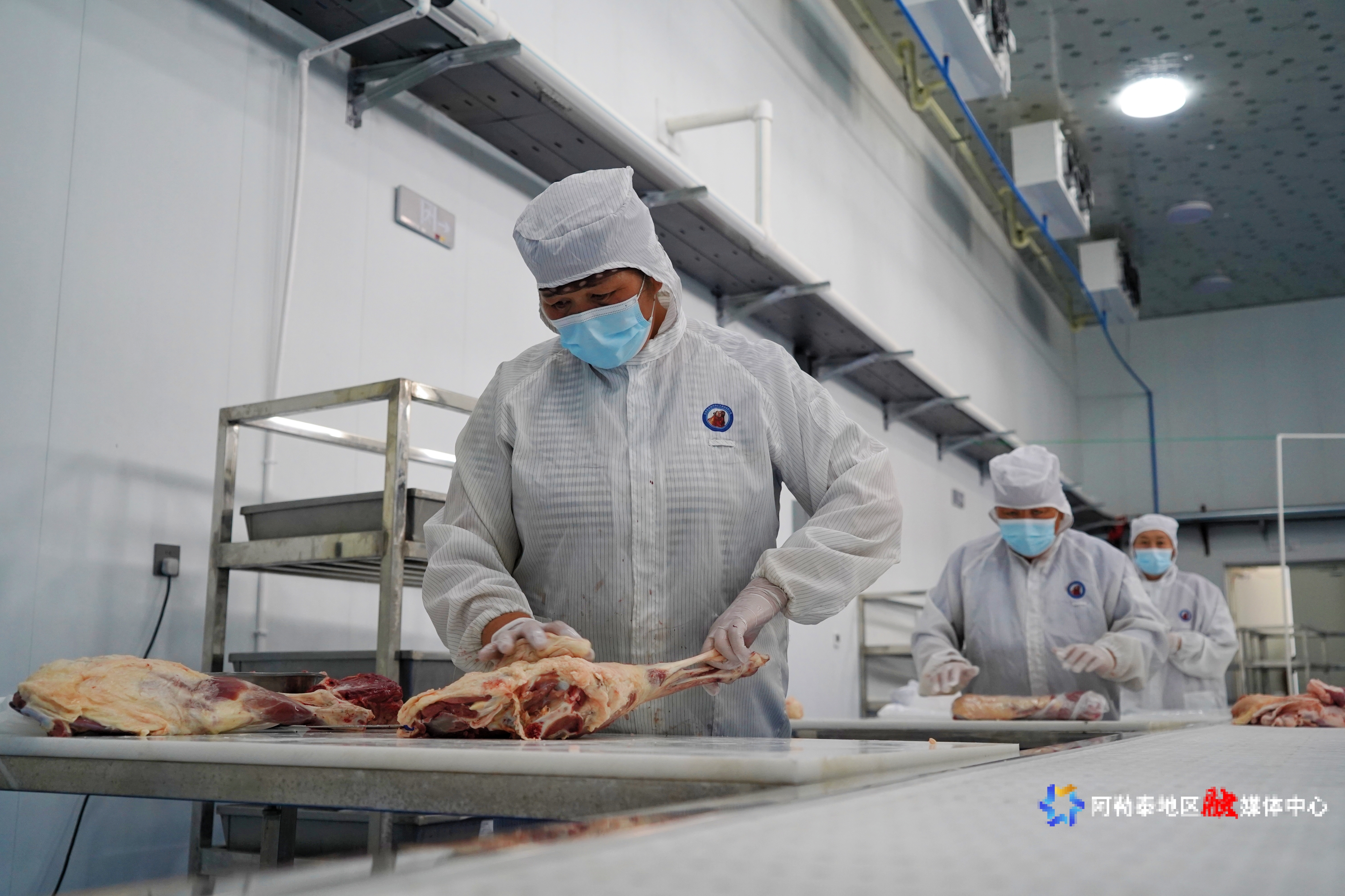 标准化养殖小区突破了分散瓶颈,增产有了保障,但破解“增产不增收”困局需对阿勒泰羊进行精深加工。2024年,喀拉通克镇白杨沟村成立合作社,引入真空包装机,开发冷鲜分割羊肉、风干肉制品,并注册地理标志品牌。同样的羊肉,经过加工后售价翻倍,牧民享受二次分红。