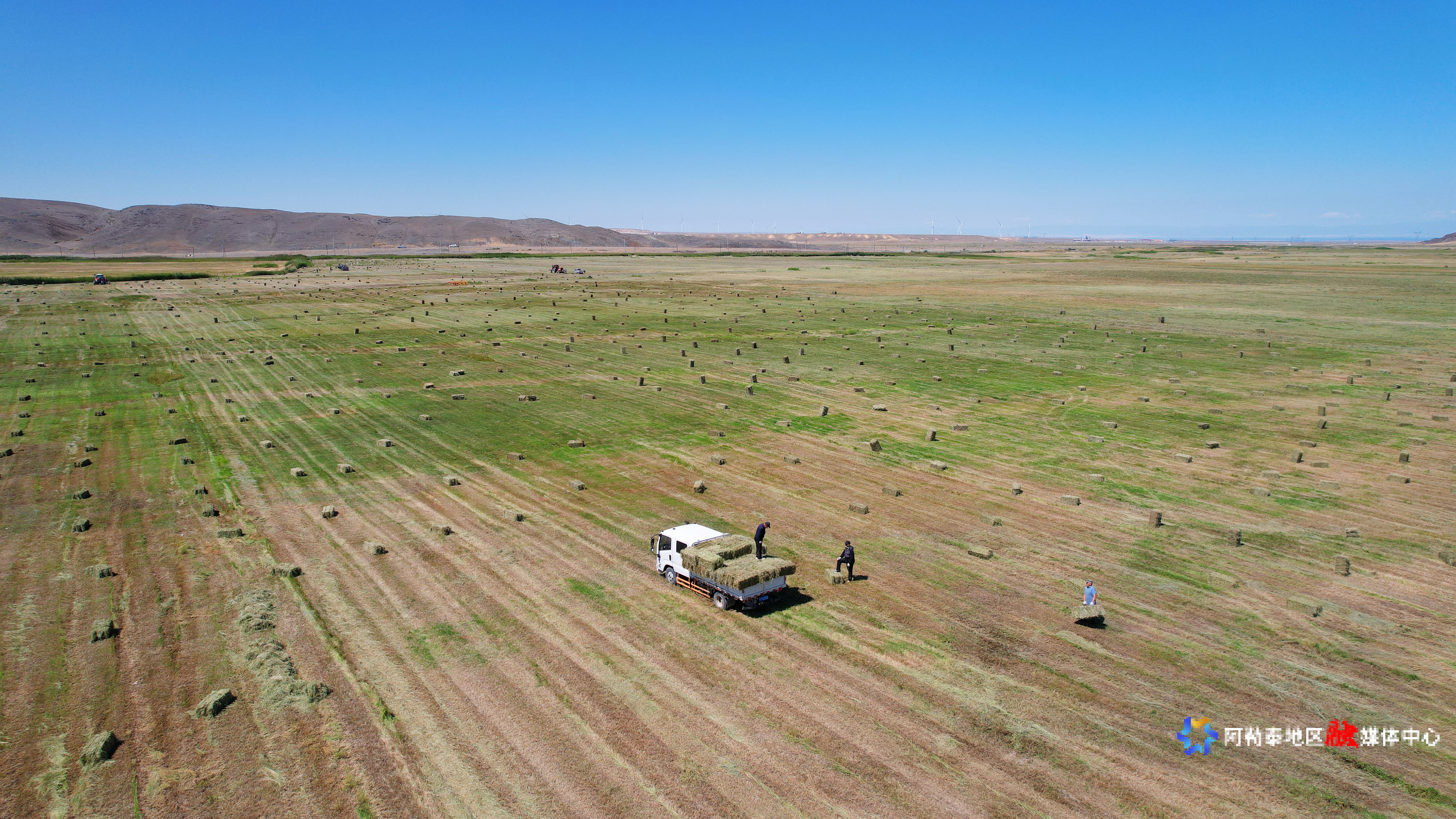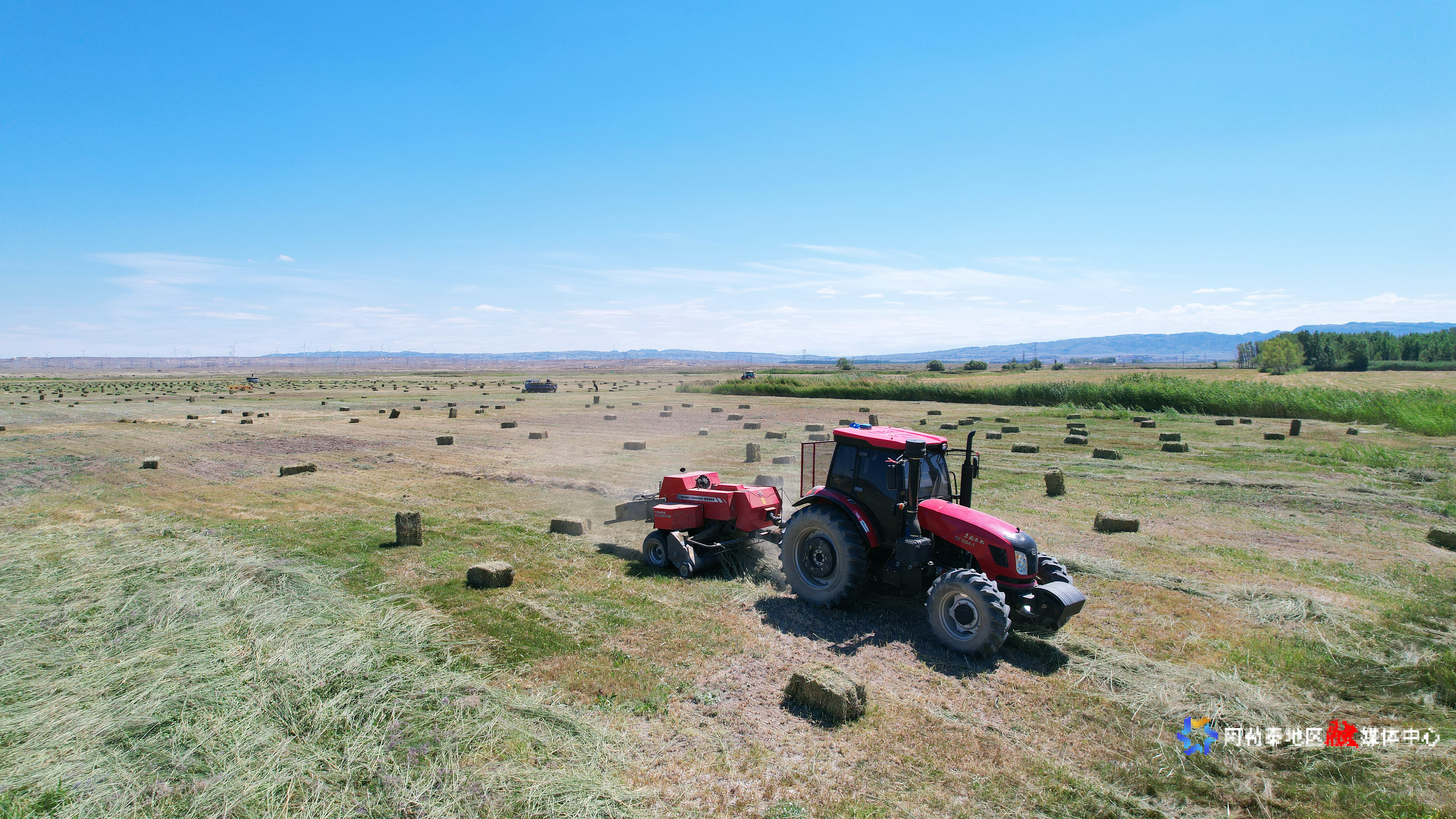 阿勒泰新闻网-阿勒泰地区融媒体中心(记者 阿尔达克·拜斯汗)8月上旬,吉木乃县迎来打草季。广袤草场上,打草机往来穿梭,牧民们在机械助力下高效完成割草、打包全流程,为牲畜越冬储备充足草料。