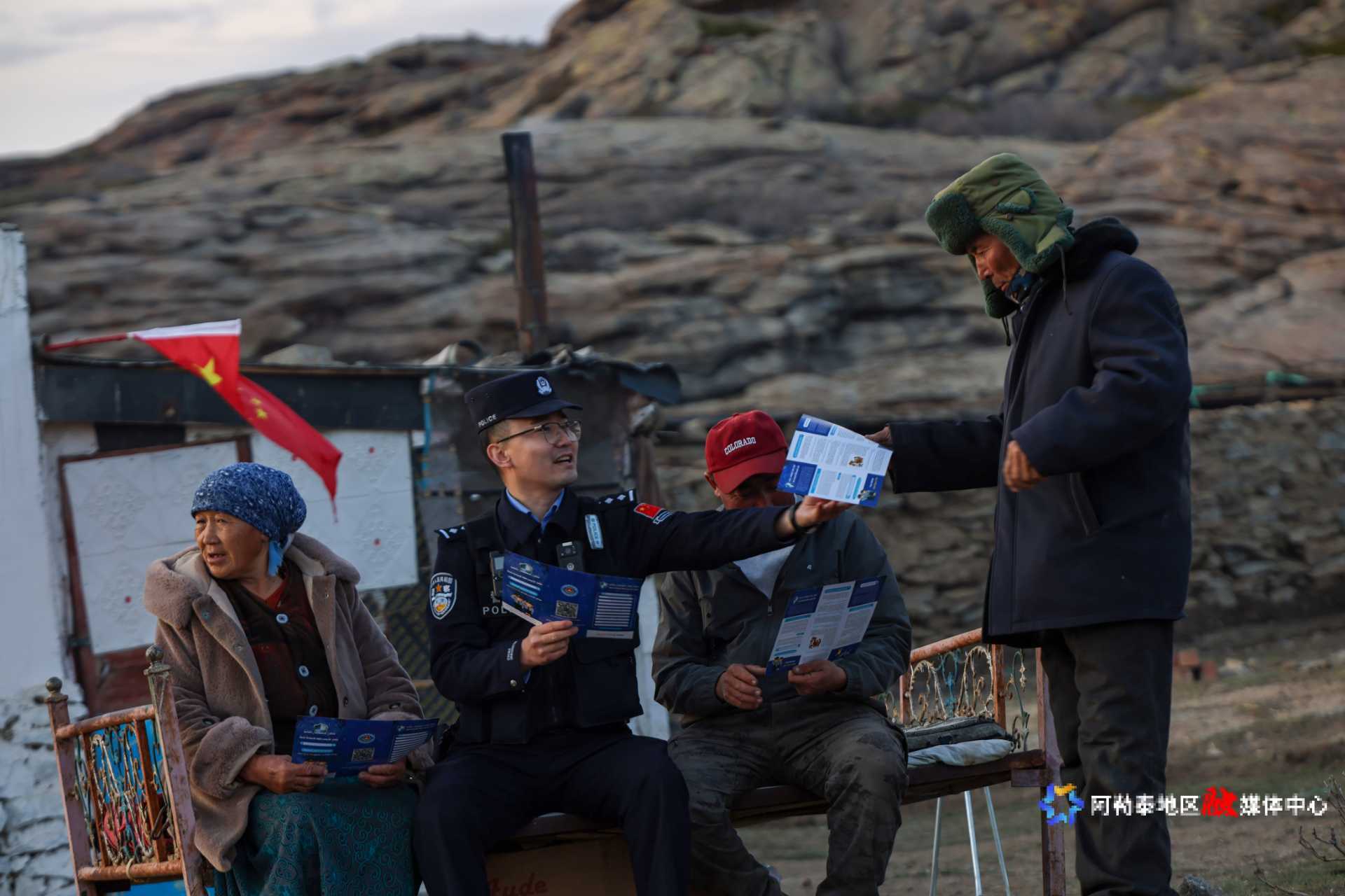 阿勒泰新闻网-阿勒泰地区融媒体中心(特约记者 王友波)10月12日,阿勒泰边境管理支队阿热勒边境派出所组织民警前往牧区,用牧民听得懂、易接受的方式进行反诈知识宣传,筑牢边境牧区反诈“安全墙”。