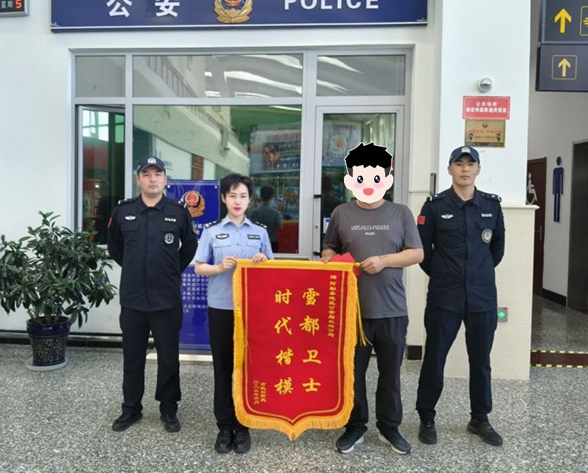接过钱包后,值班民警立即启动“失主速寻”机制:以身份证信息为核心,联动机场旅客信息系统核查近期航班信息,同步联系失主户籍所在地派出所协助确认联系方式。仅1小时,民警便与失主取得联系。由于失主已离开阿勒泰,民警详细核对钱包内物品信息后,协调其家属当日到场认领。6月27日,失主专程从外地来到阿勒泰,把印有“雪都卫士 时代楷模”字样的锦旗送到分局,并感谢道:“你们雷厉风行的工作效率,帮我挽回了损失,感谢你们的辛苦付出!”