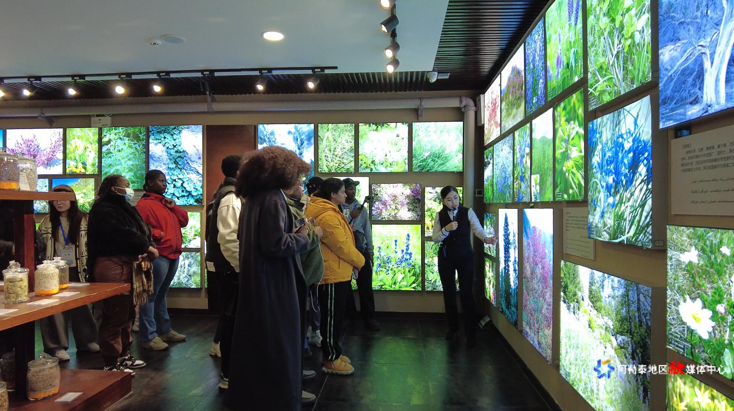 浙江师范大学留学生研学团在阿尔泰山中草药博物馆参观。记者 张涛摄
