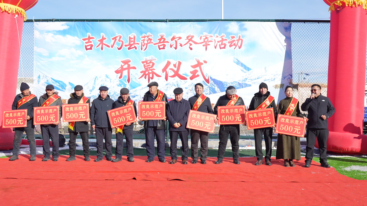 活动现场精彩纷呈,特色赛事与民俗展演轮番登场,点燃了冬日草原的热情。在“最肥美萨吾尔牛羊”评选环节,牧民们纷纷牵来自家精心饲养的牲畜,评委团围绕体型、毛色、肉质等核心维度开展专业评选。经过层层筛选,优质萨吾尔牛羊脱颖而出,赢得现场阵阵喝彩,获奖的改良户、示范户登台领奖,成为全场焦点。