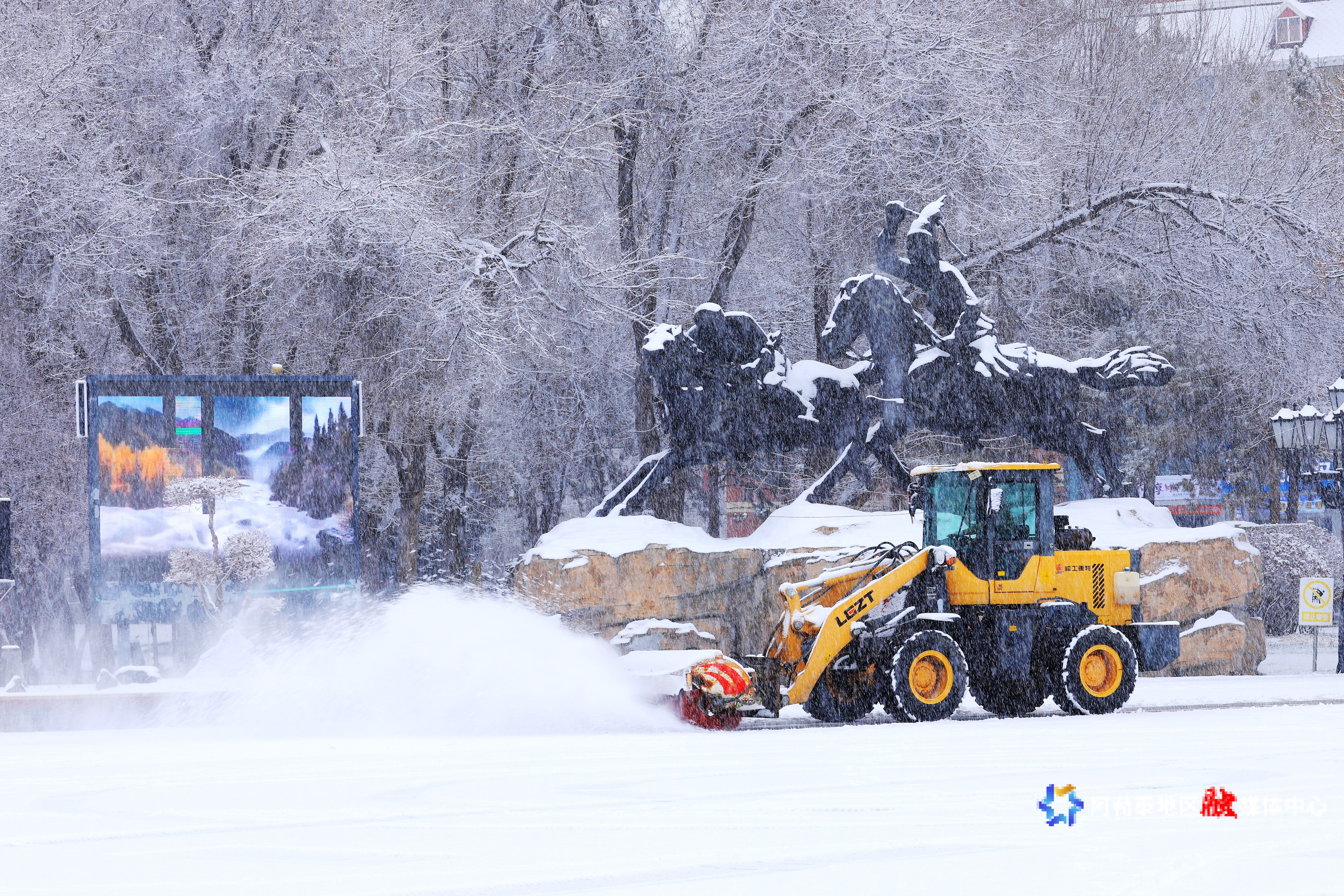 2025年11月13日,大型机械清理道路积雪。阿尔达克·拜斯汗 摄
