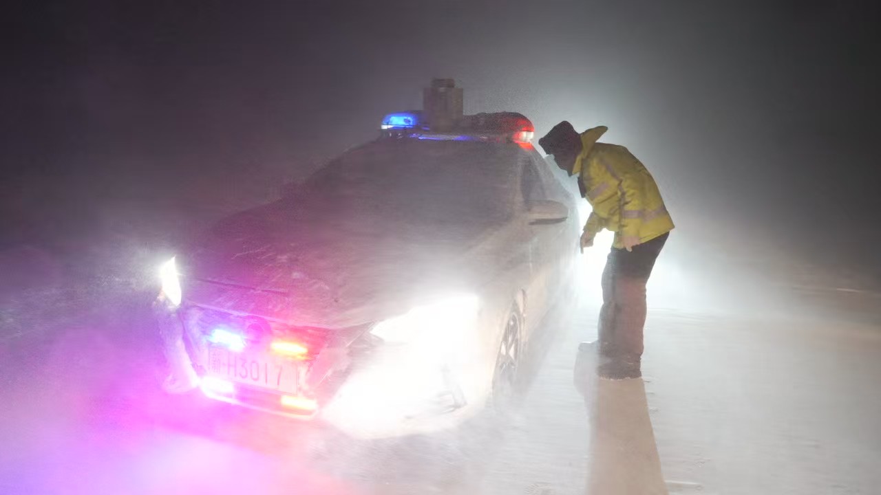 在富蕴县,当地公安交警迅速启动恶劣天气应急预案,全员上路,在积雪覆盖的路段用警车带道压速,引导车辆通行,并联合养护部门开展清雪除冰作业,全力保障群众出行安全。
