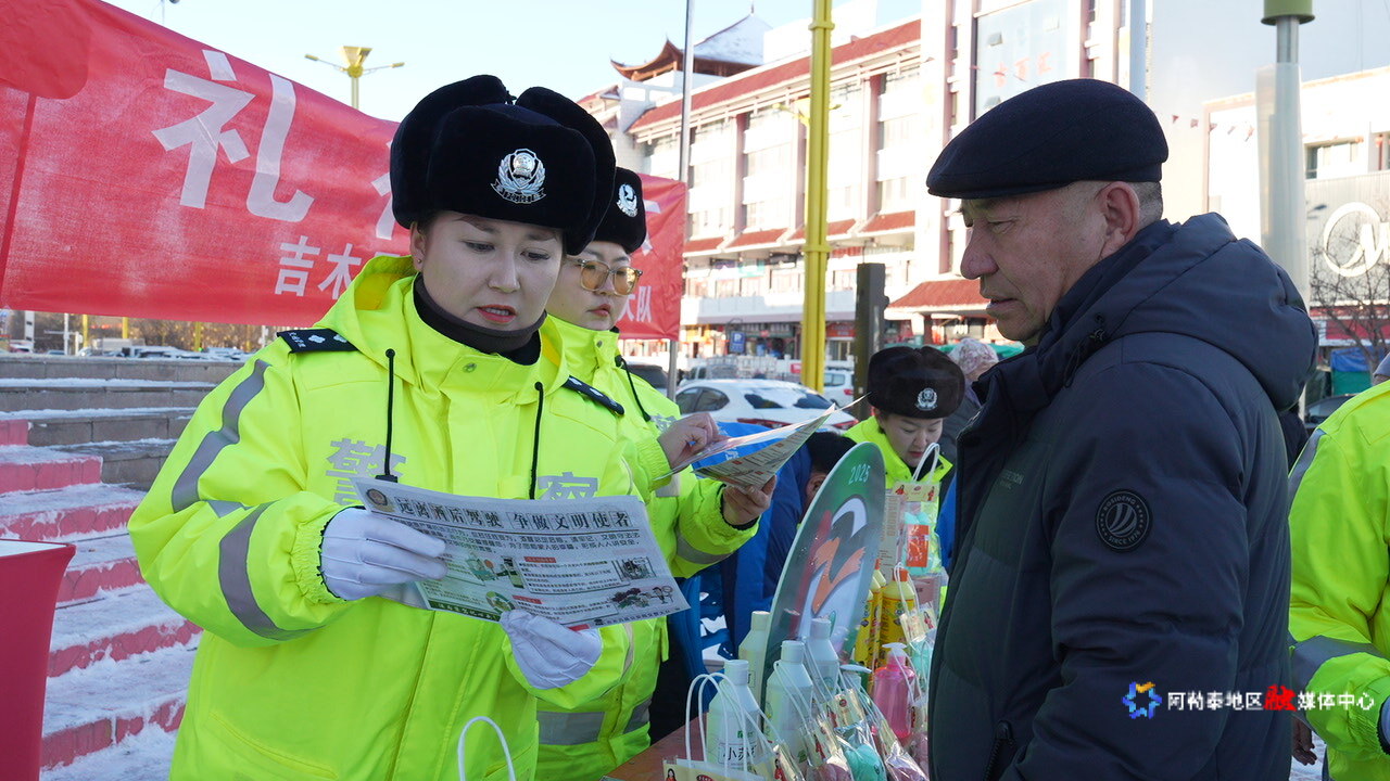 12月2日是第十四个“全国交通安全日”。今年,公安部、中央网信办、中央文明办等八部门联合推出“文明交通 礼行天下”主题活动,共同推动形成新时代文明交通风尚。近日,阿勒泰交警开展了系列交通安全宣传活动,将交通安全知识送到群众身边。