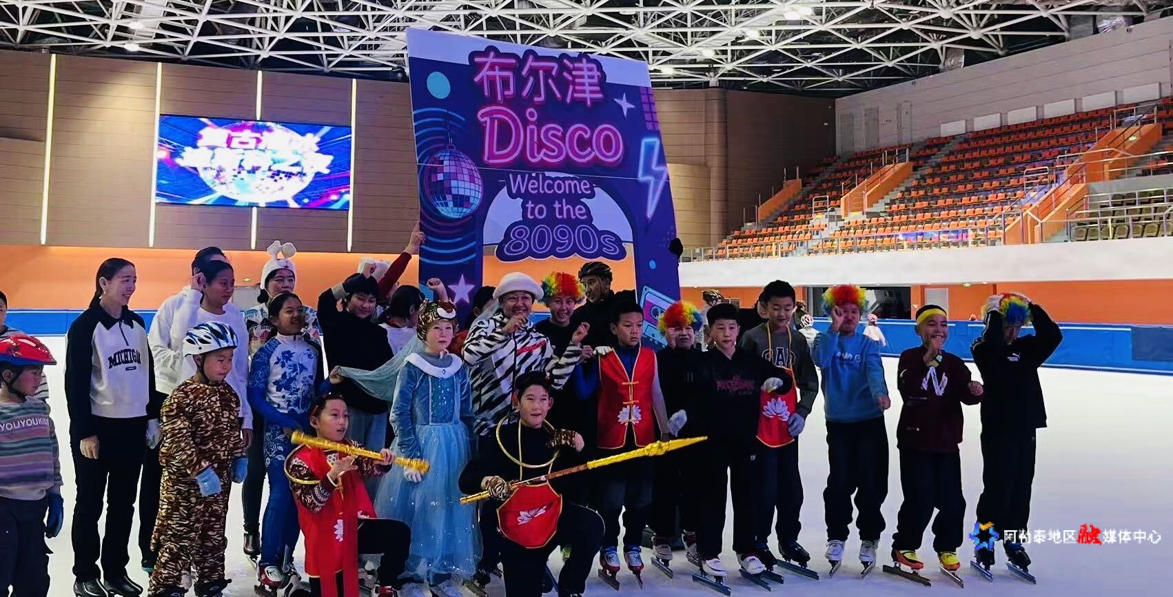 雪假期间,孩子们在布尔津县冰上运动中心参加“复古溜冰迪斯科之夜”活动。布尔津县文化体育广播电视和旅游局供图