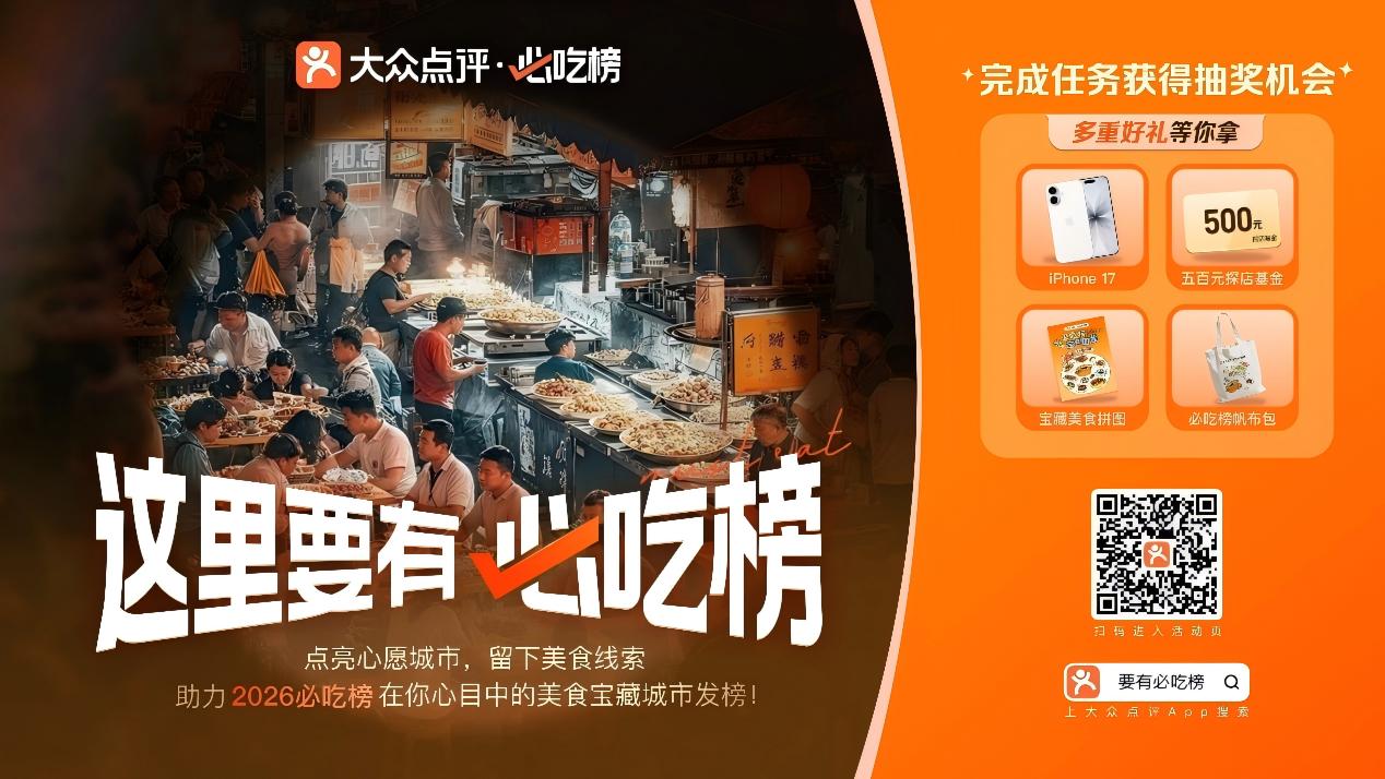 本活动将持续至2025年12月31日?;疃诩?,用户打开大众点评APP,搜索“阿勒泰要有必吃榜”即可进入活动页面,通过点亮心愿城市、发布美食笔记、撰写评价或打卡餐厅等方式参与互动。参与者不仅能为家乡美食助力,还可参与抽奖,赢取iPhone17、千元珐琅锅、美食拼图等实物奖品,还有机会成为“必吃城市锦鲤”,获得四重专属权益:成为2026年必吃榜新发榜城市美食宣传片嘉宾、获邀参加2026年必吃榜发布会、获取“必吃榜·城市领吃计划”全年直通pass卡、500元美食探店基金。