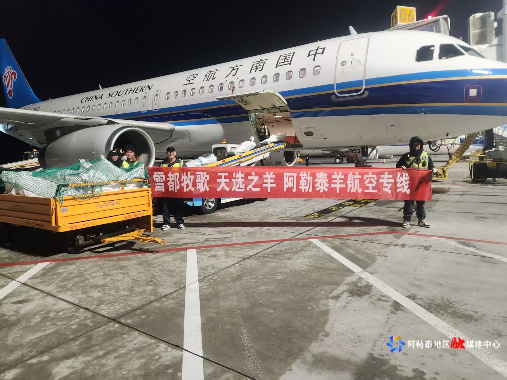 一批带着“有机溯源”标签的阿勒泰羊肉正准备搭乘专机销往千里之外。