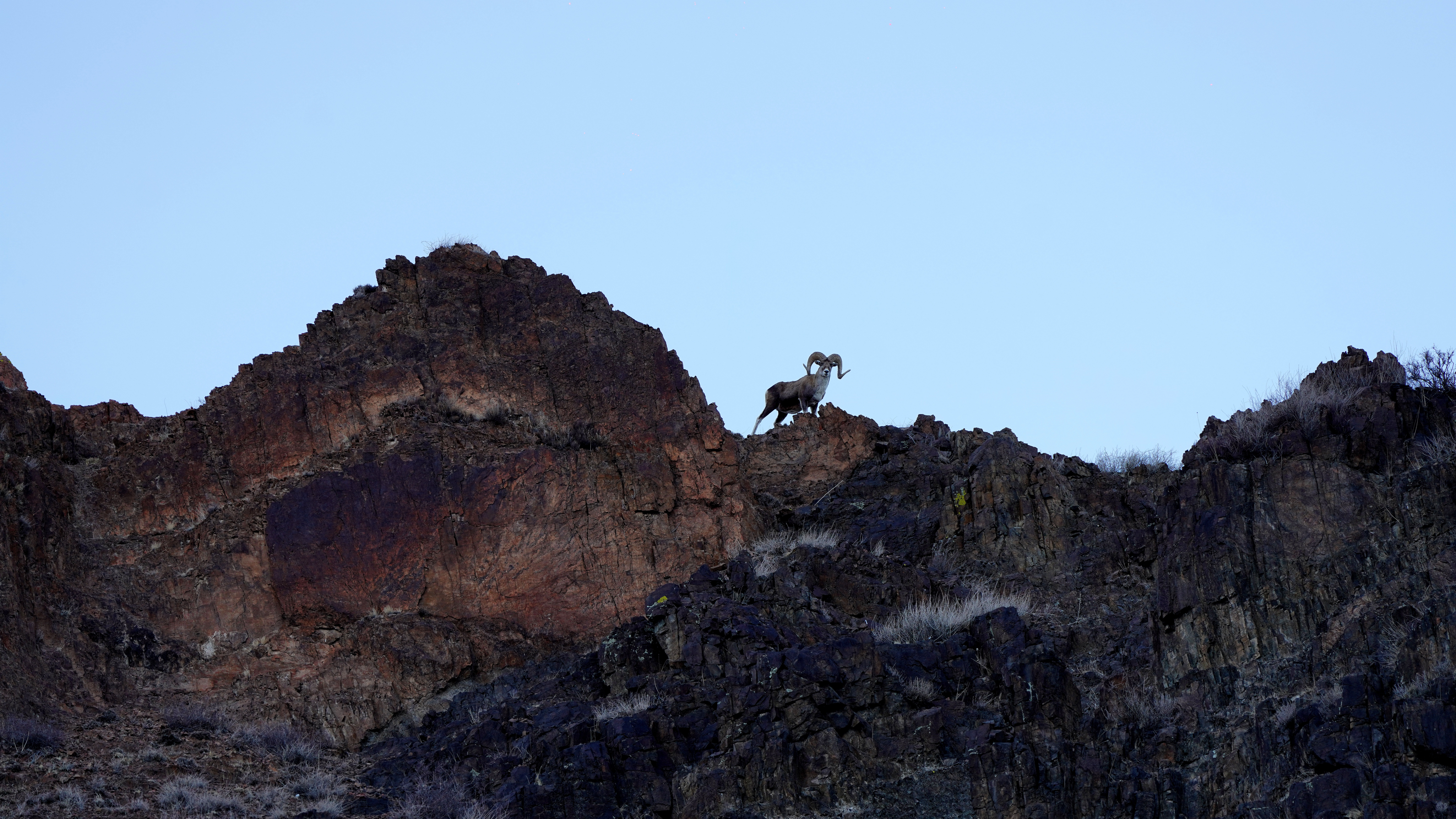 2026年1月9日,记者在阿勒泰地区吉木乃县萨吾尔山片区拍到国家二级保护动物盘羊。
