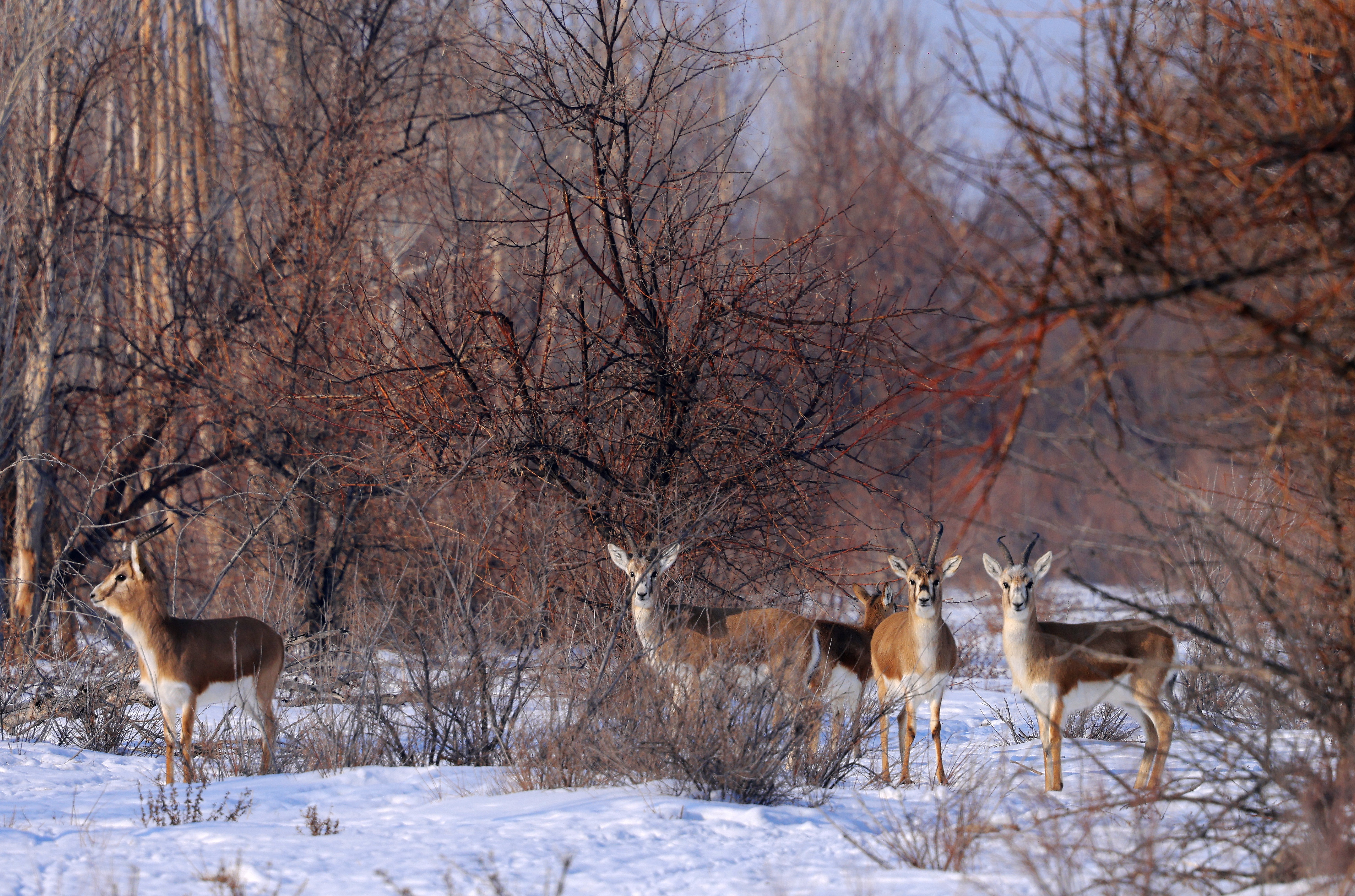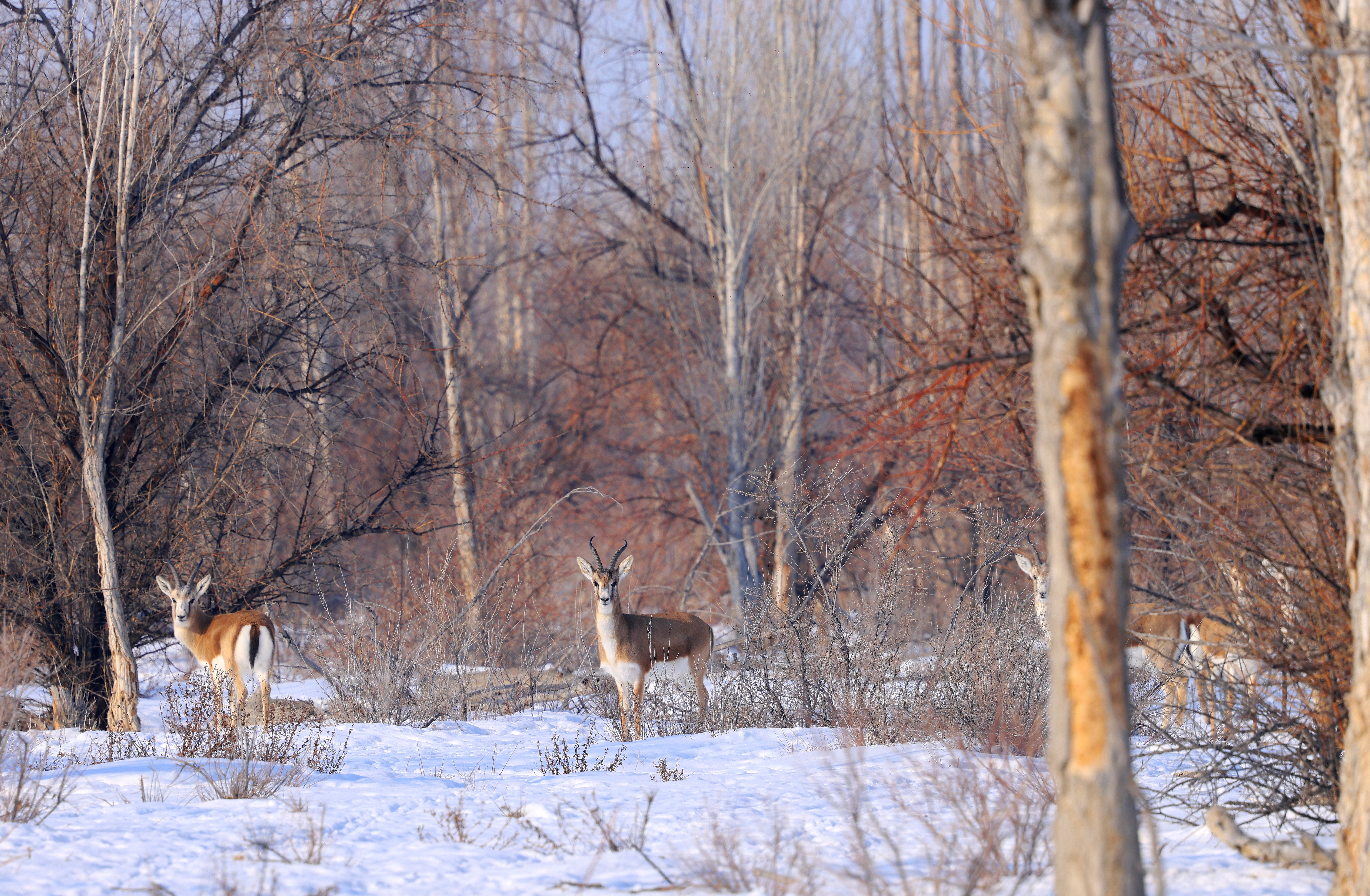 2026年1月12日,记者在福海县解特阿热勒镇博塔莫因片区的人工林中拍摄到鹅喉羚。阿尔达克·拜斯汗 摄