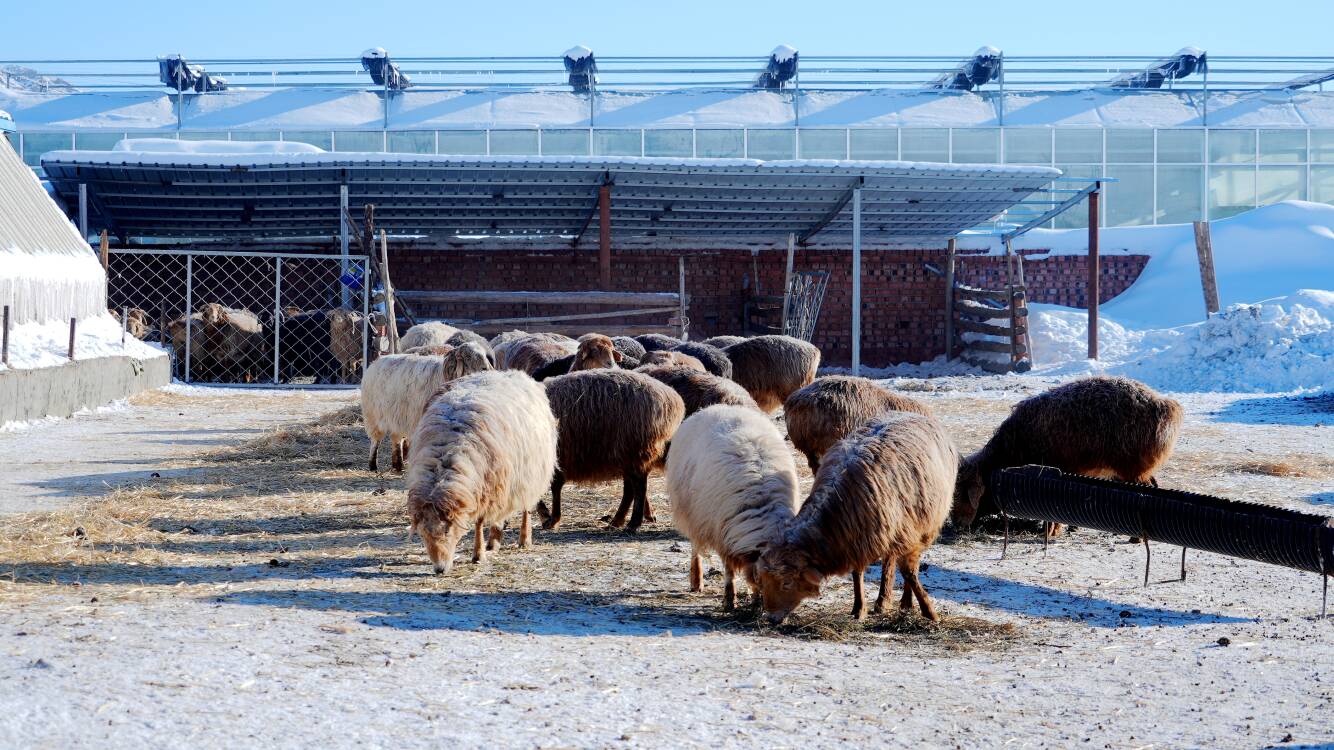 1月17日,吐尔洪乡托留拜克孜勒村村民阿勒斯别克·谢尔亚孜养殖的羊群正欢快地吃着草料。记者 张福新摄