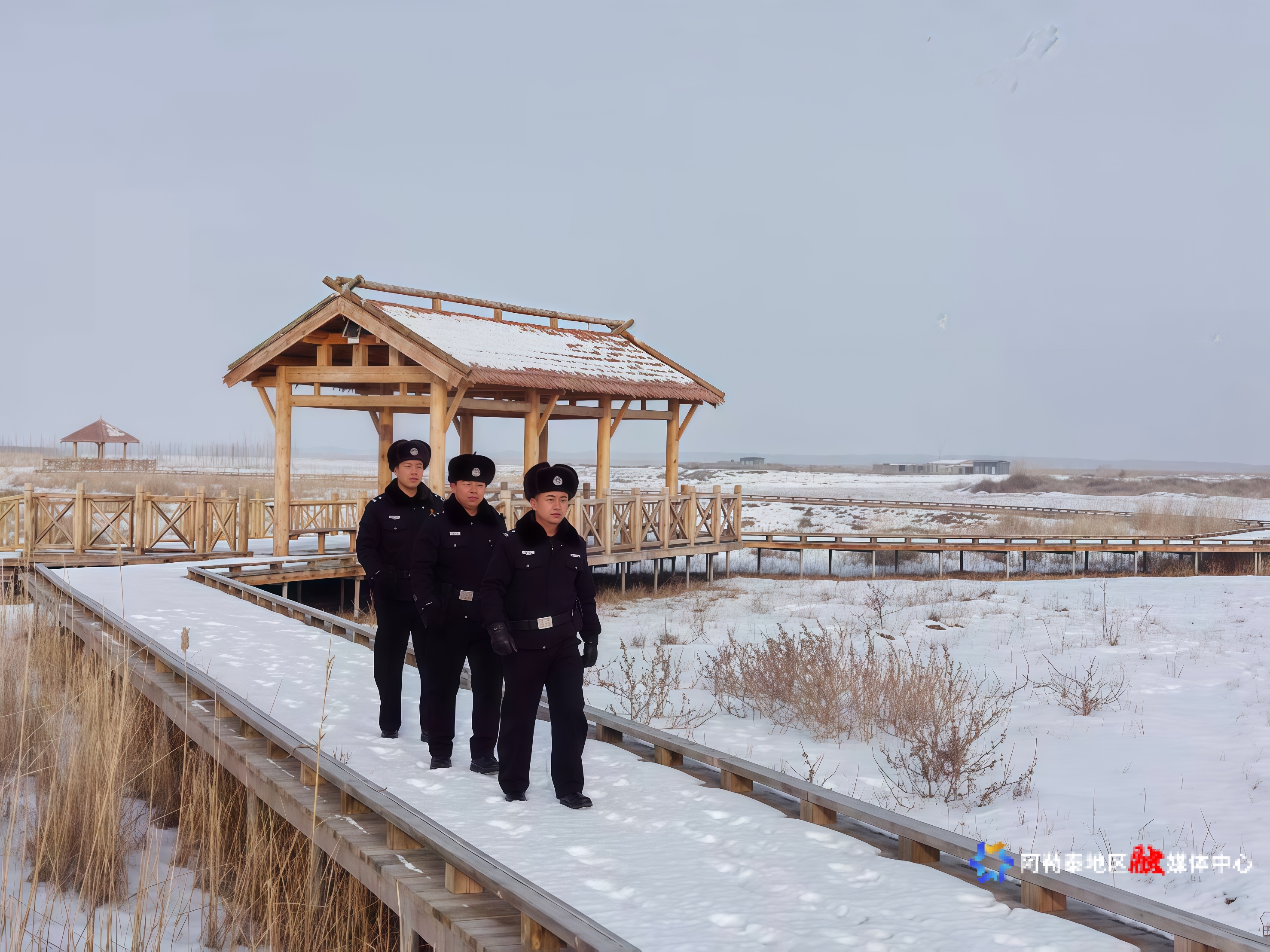1月25日,阿勒泰市公安局阿拉哈克镇派出所民警在科克苏湿地国家级自然?;で共窖补ぷ鳌Mㄑ对?韩宏亮 摄