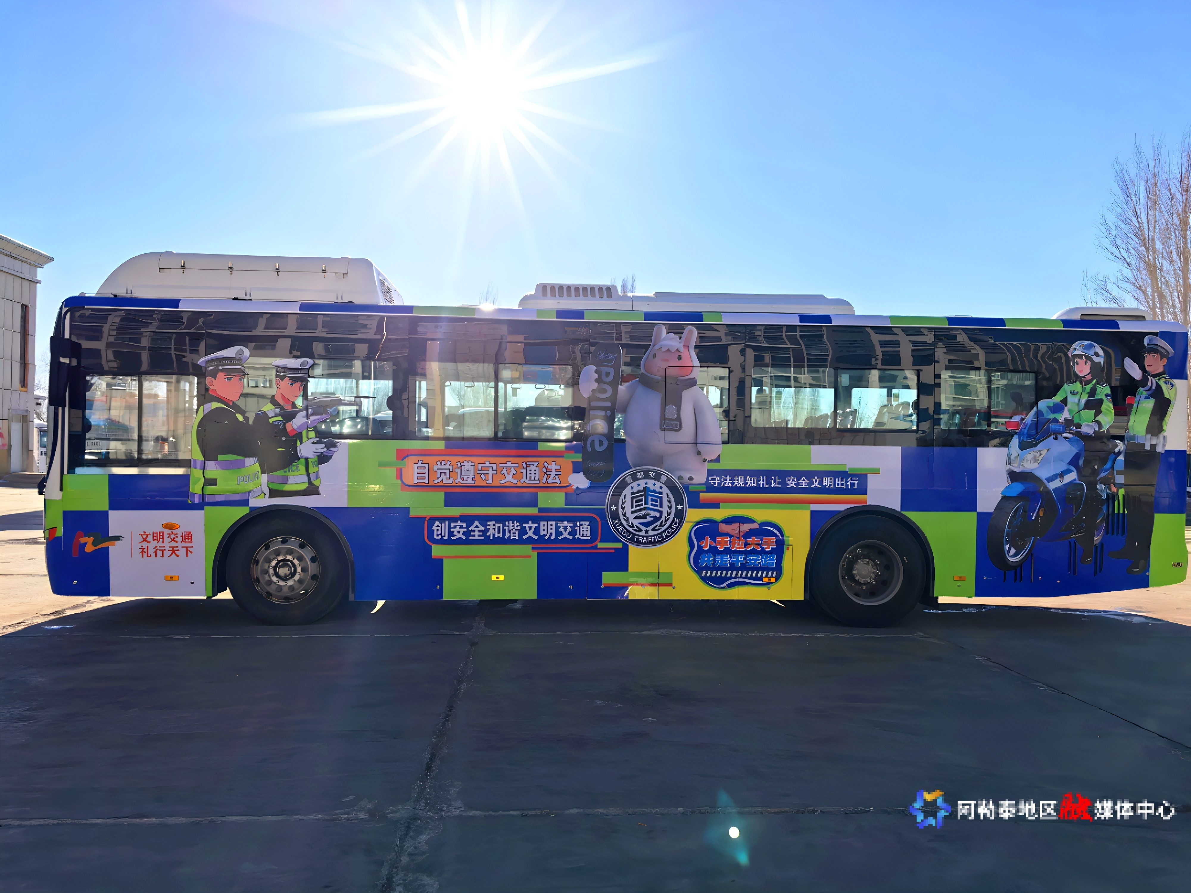 阿勒泰市公安局交通管理大队精心打造并投用2辆交通安全主题宣传公交车。
