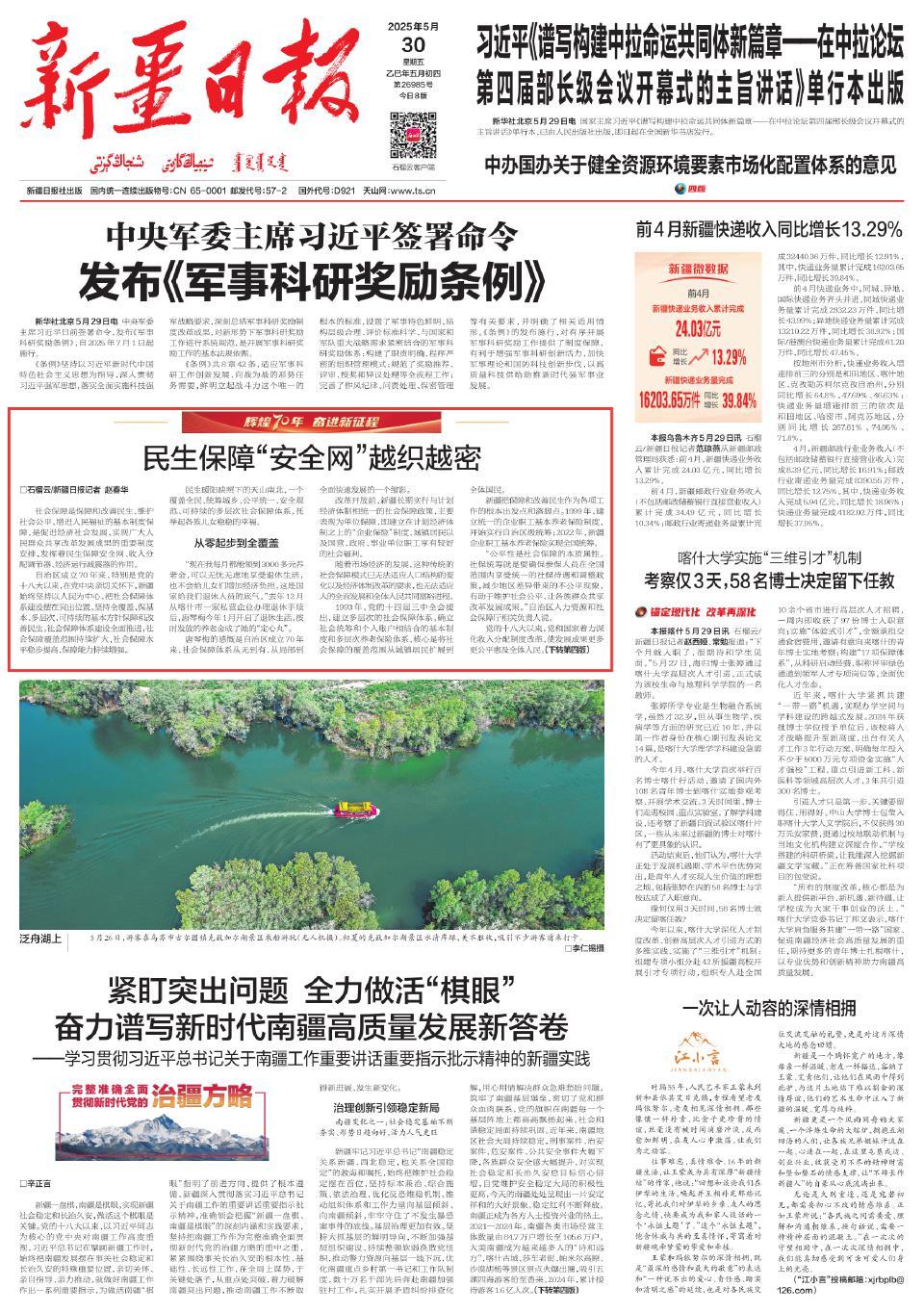从城市到农村,从零起步到全覆盖,随着社保统筹层次不断提升,新疆深入实施全民参保计划。2024年,全区基本养老保险、失业保险、工伤保险三项社会保险参保达2248.11万人次,一张越织越密的社会保障网,兜住、兜准、兜牢民生底线。