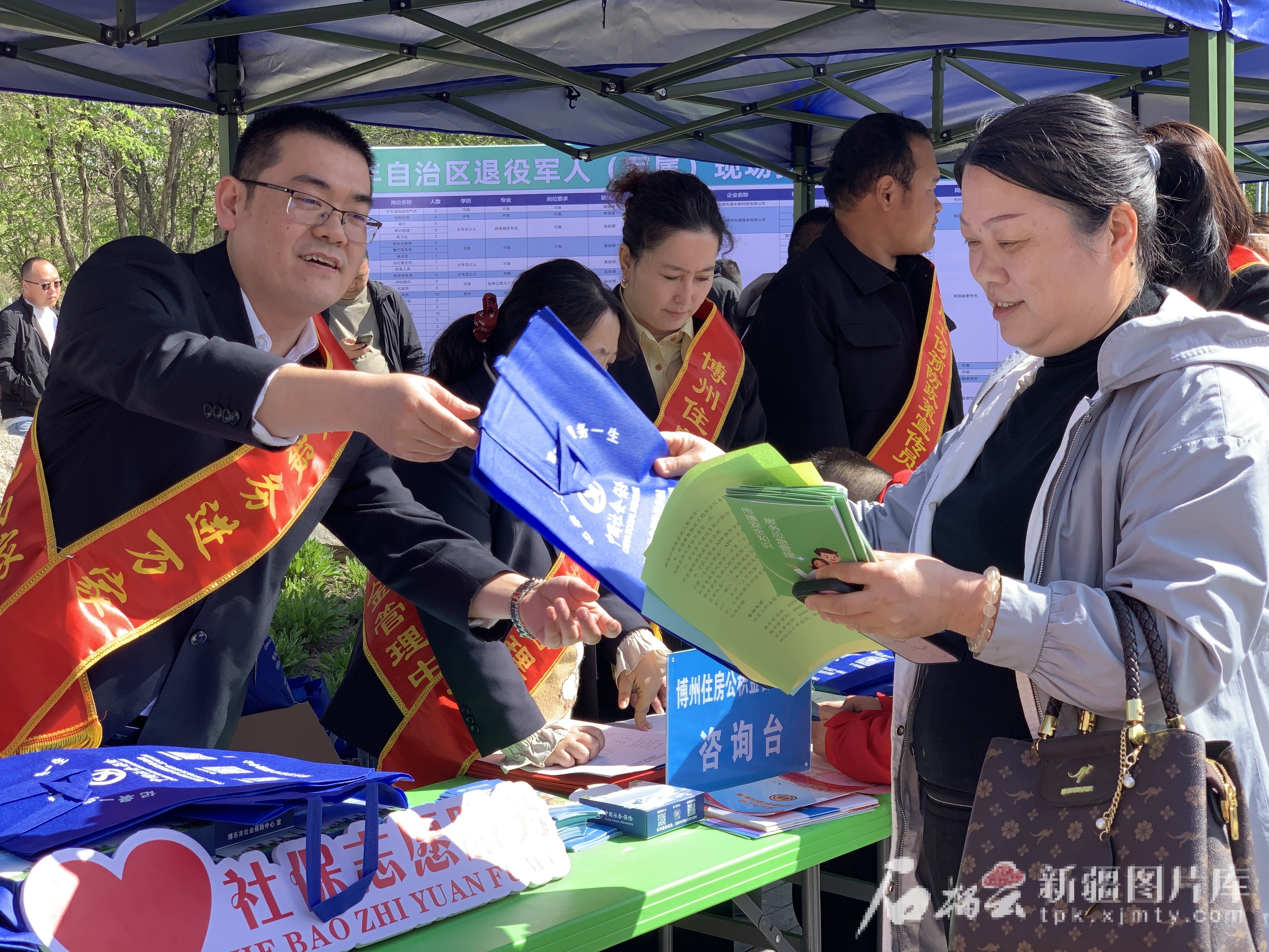 4月18日,博乐市社会保险中心“微笑社?!敝驹阜穸涌埂吧绫7窠衅富帷毙疃?。图/博乐市社保中心提供