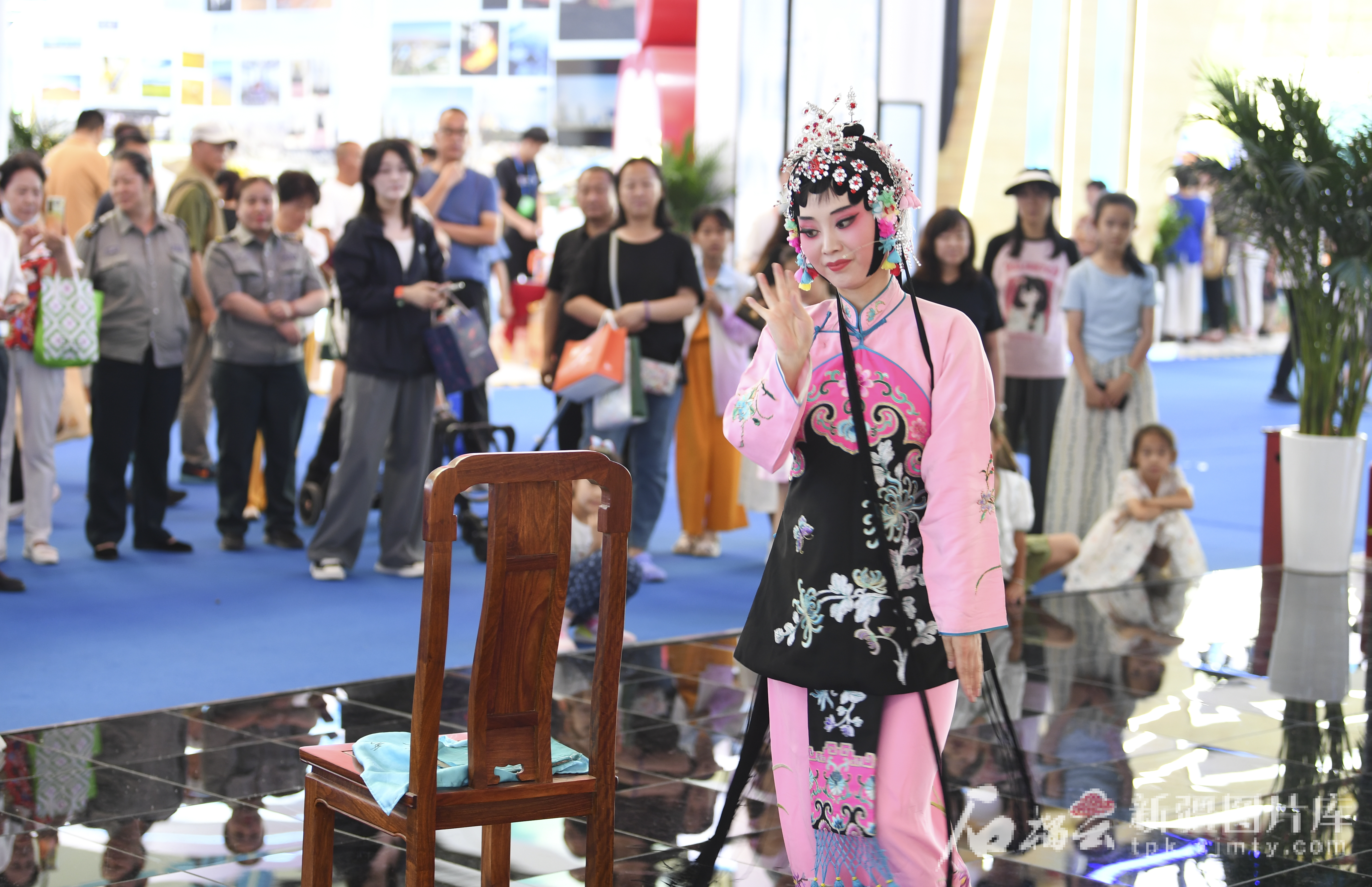 参观者在新疆生产建设兵团展位观看曲子戏。