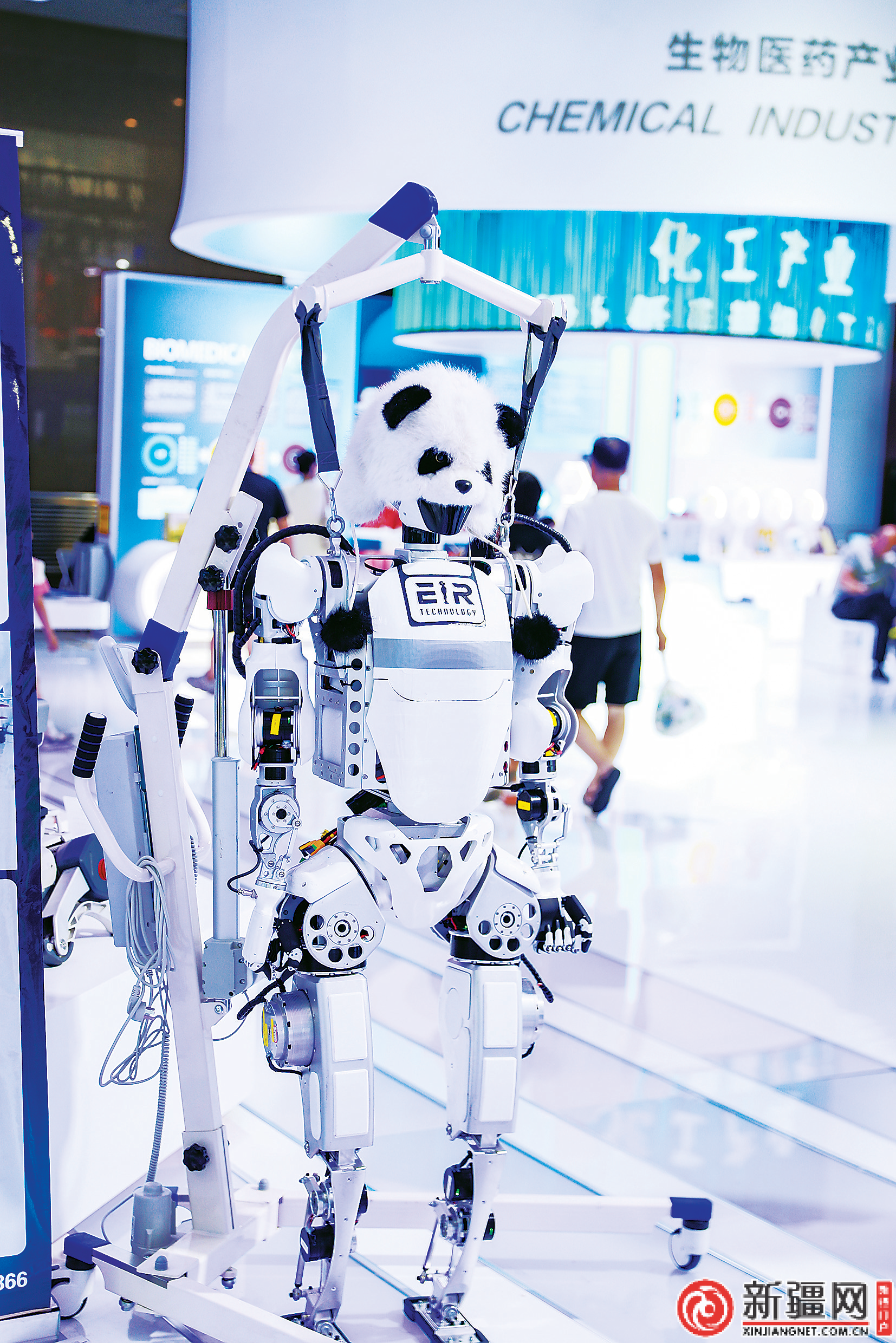 在乌鲁木齐展馆展示的“天行者1号”机器人,有搬运、语言交流等功能。 (记者米热扎提·木塔力甫摄)