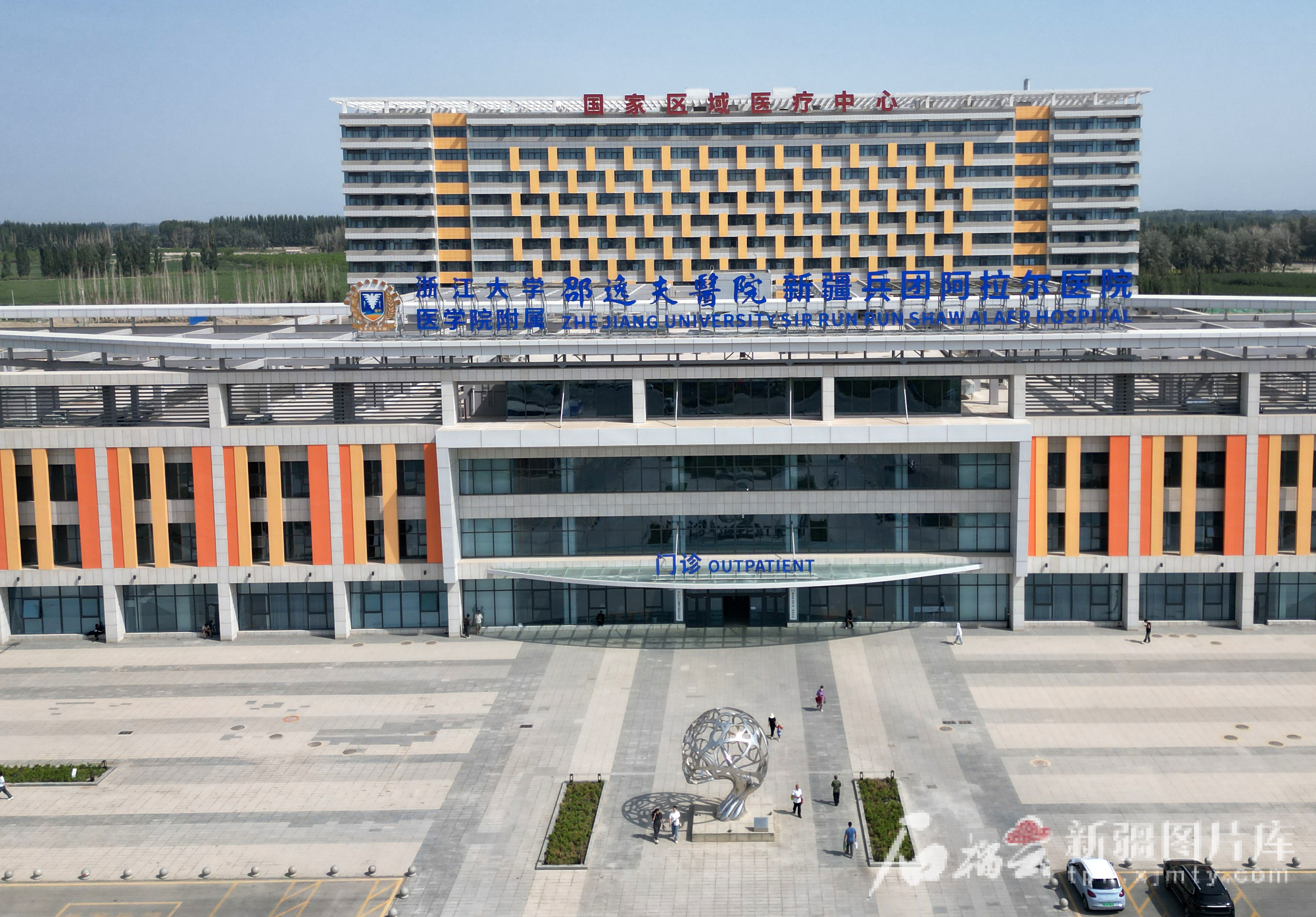 浙江大学医学院附属邵逸夫医院新疆生产建设兵团阿拉尔医院外景(8月12日无人机摄)。