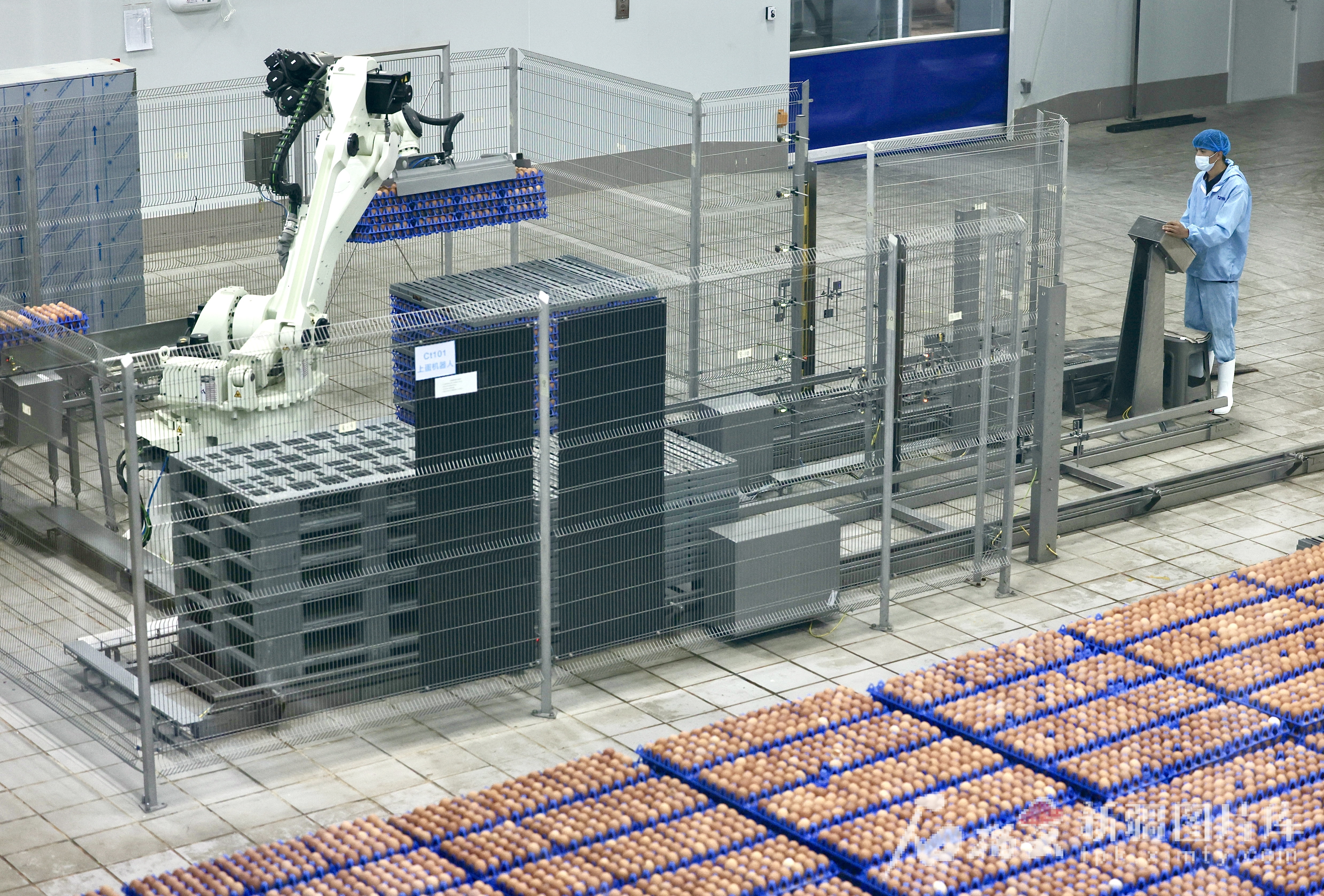 8月14日,新疆西帕健康食品有限公司上蛋车间,工作人员正在操作机械臂。