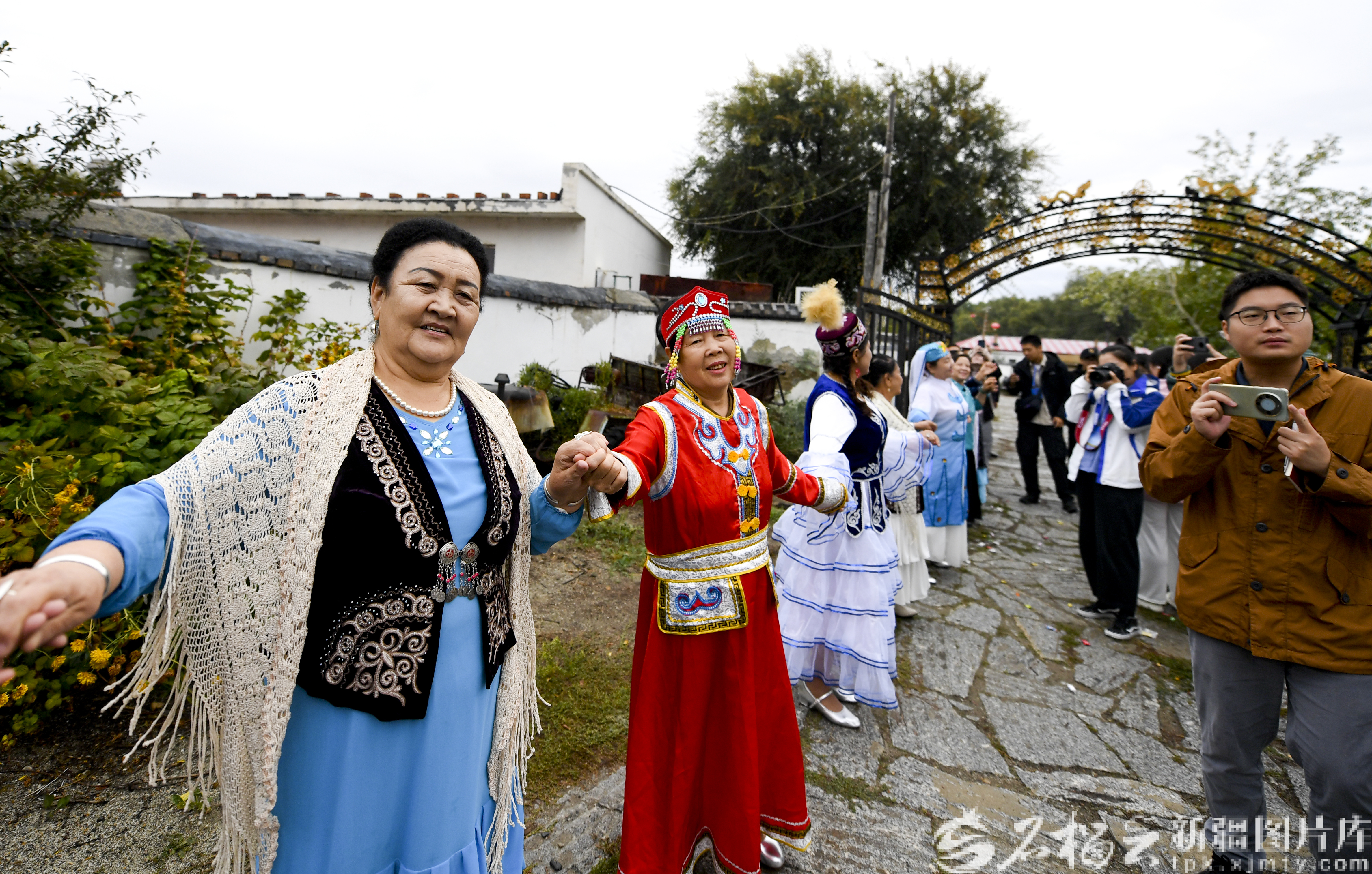 9月9日,各族村民在“户儿家”文化大院欢迎参观者。