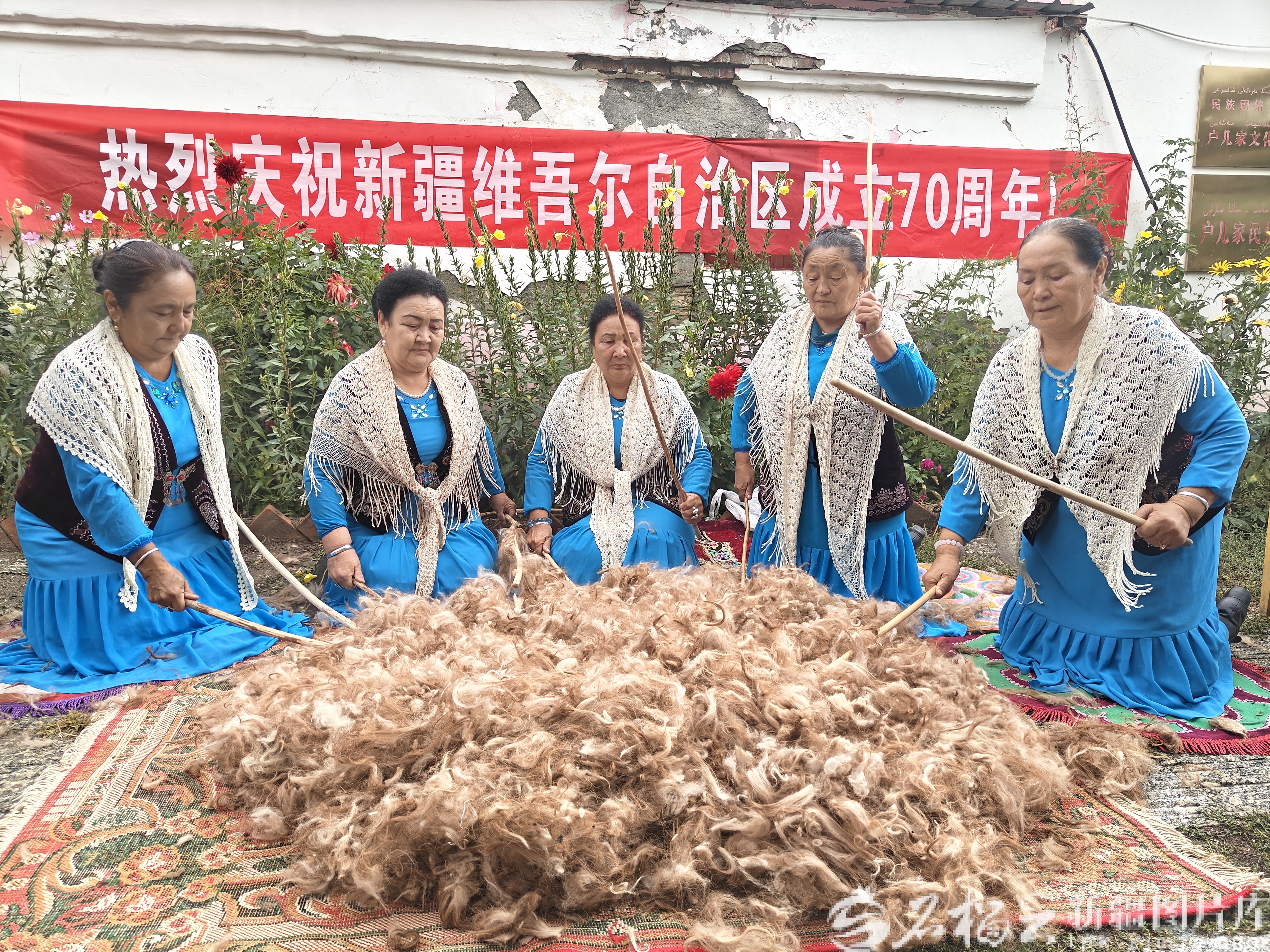 9月9日,“户儿家”居民在打羊毛。石榴云/新疆日报记者 张磊摄
