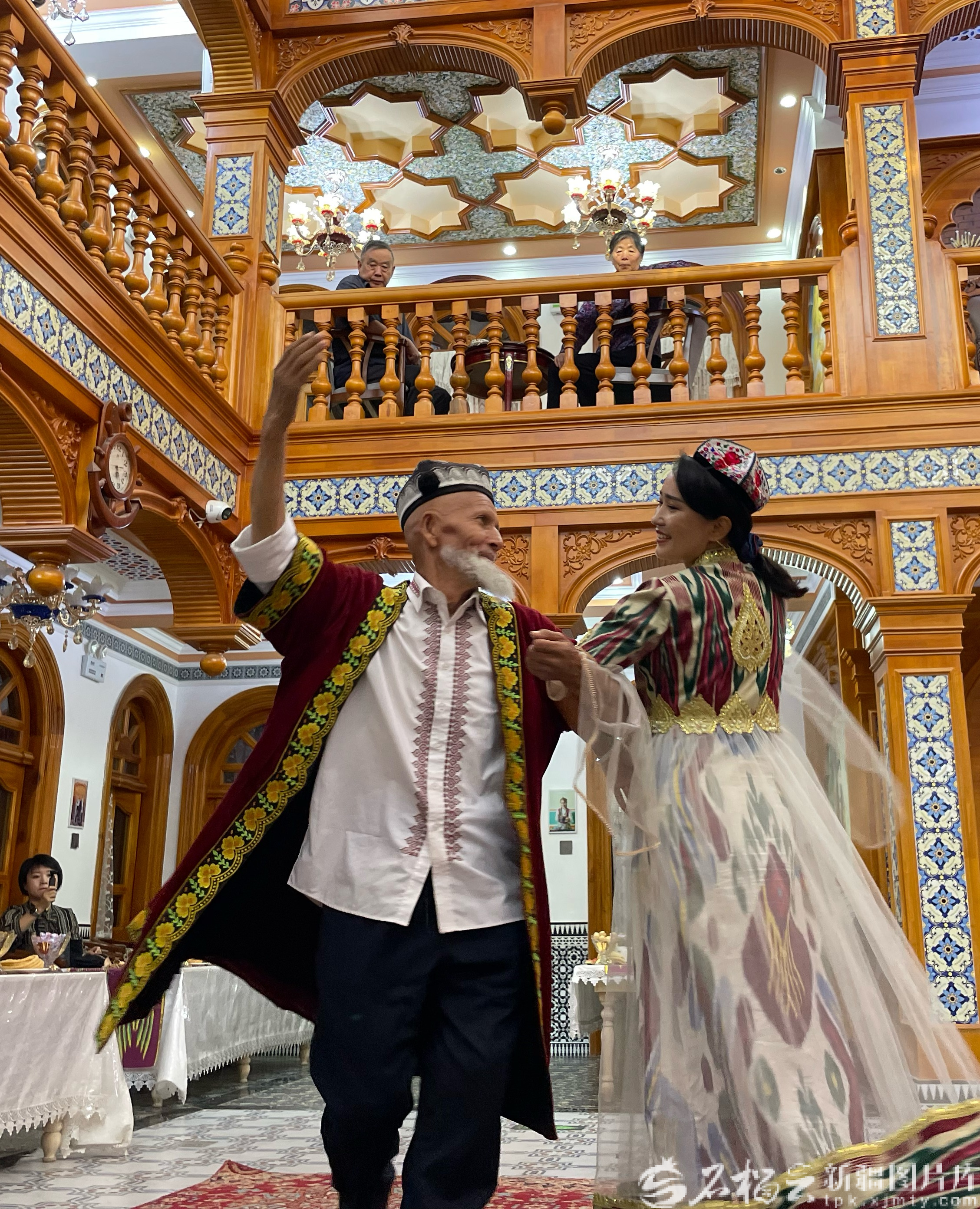 在喀什古城的街巷里、店铺旁,经常能见到像斯马义这样的老人,他们满脸笑容,或是围坐在一起晒太阳、喝茶,或是伴着乐曲跳舞、弹乐器,成为游客镜头里鲜活的画面,更成为古城里最生动的烟火气。