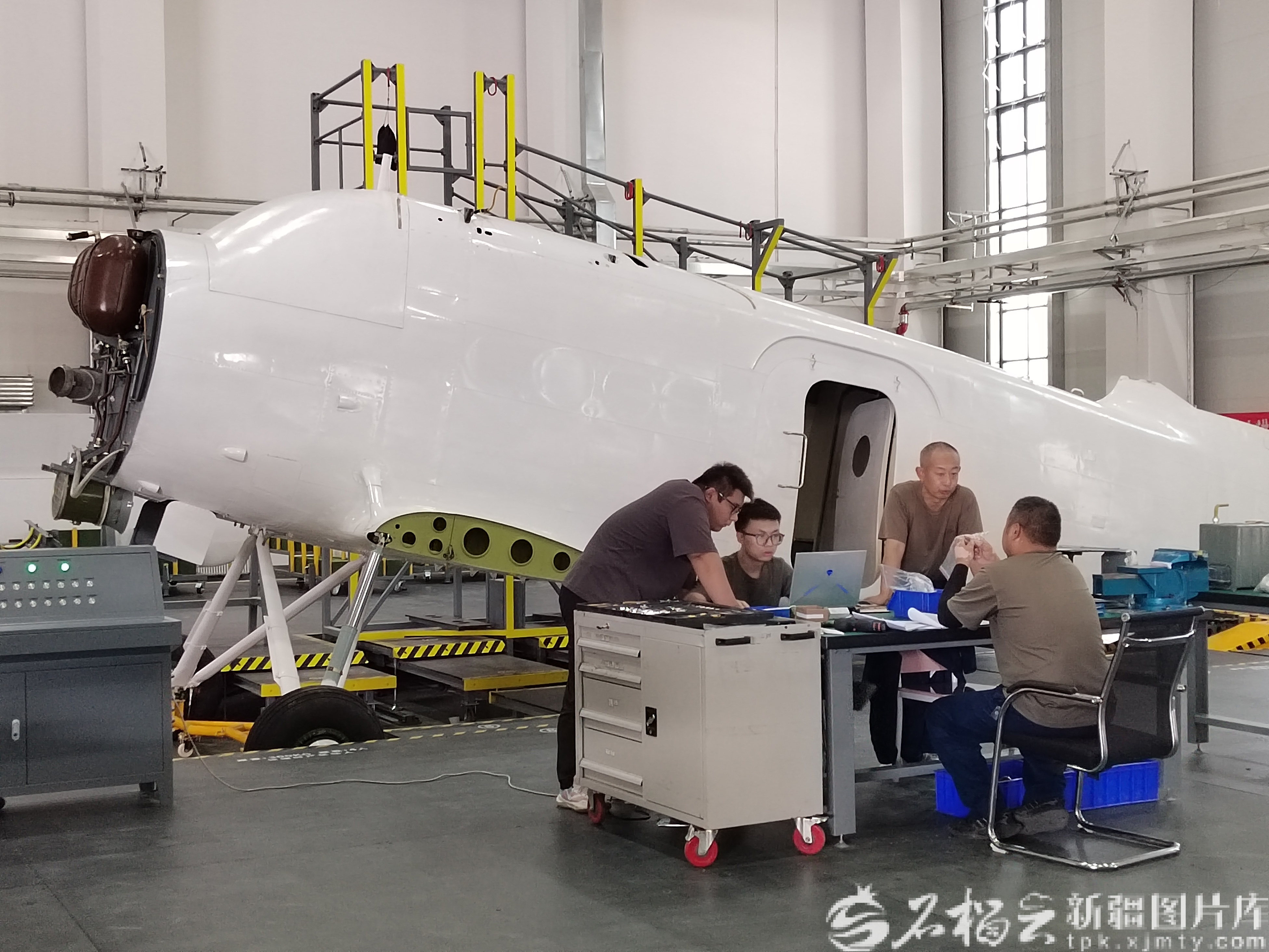 9月11日,新疆天域航通科技有限公司工作人员组装完成的一架大型无人机。