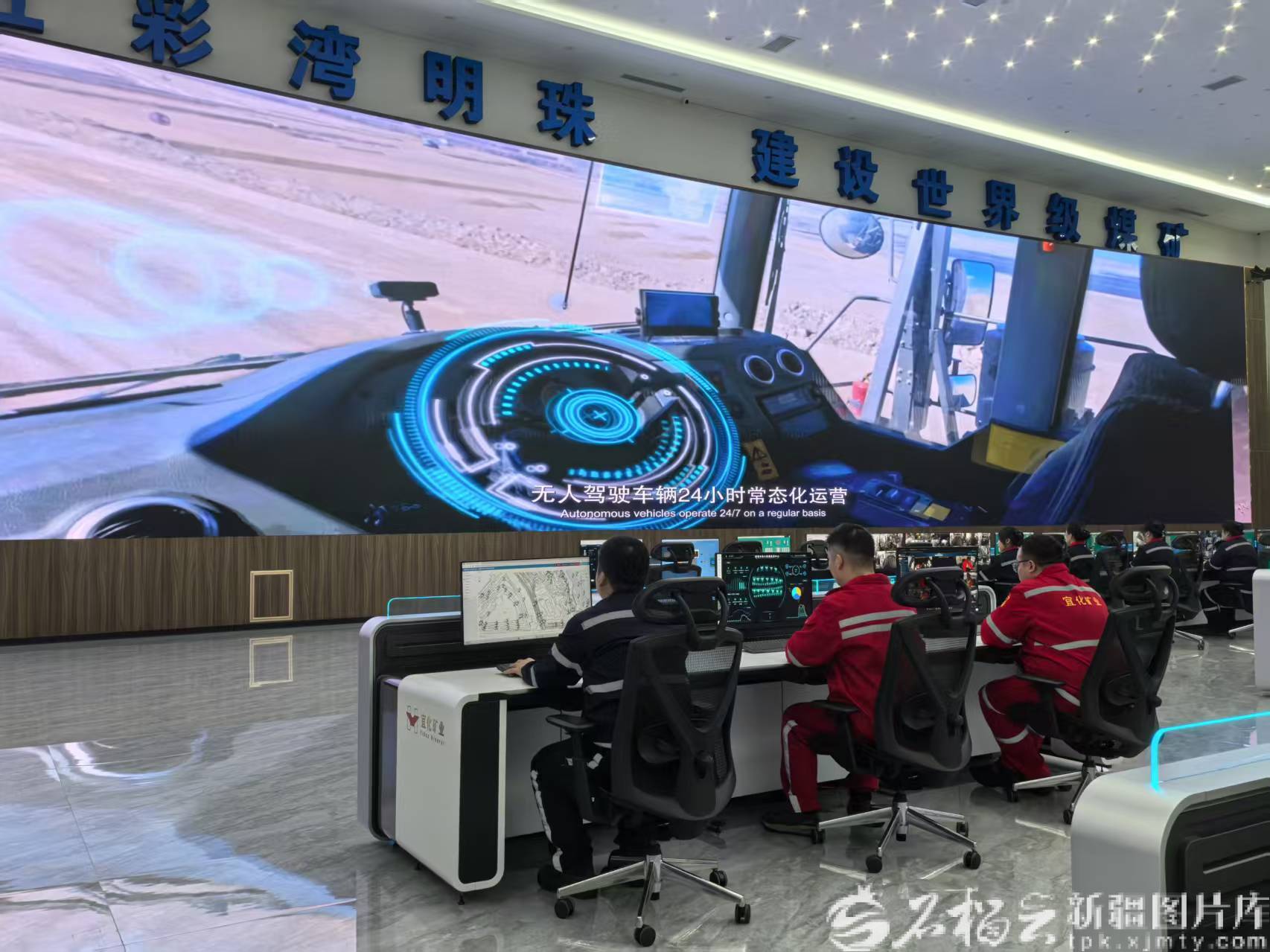 2024年12月10日,新疆宜化矿业有限公司工作人员坐在中控室监测煤矿安全生产。石榴云/新疆日报记者 于江艳摄