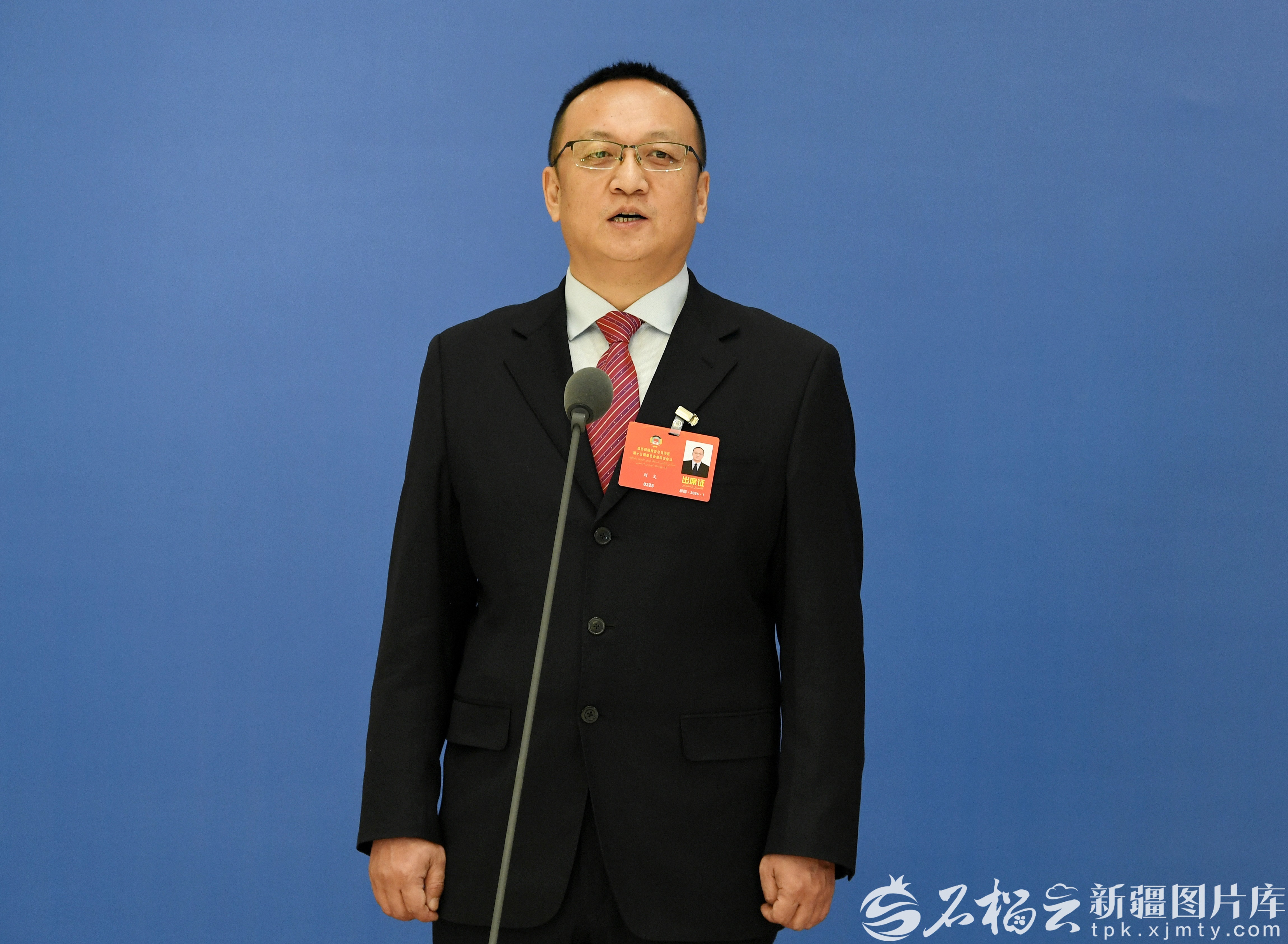 李保强委员答记者问。石榴云/新疆日报记者约提克尔·尼加提摄