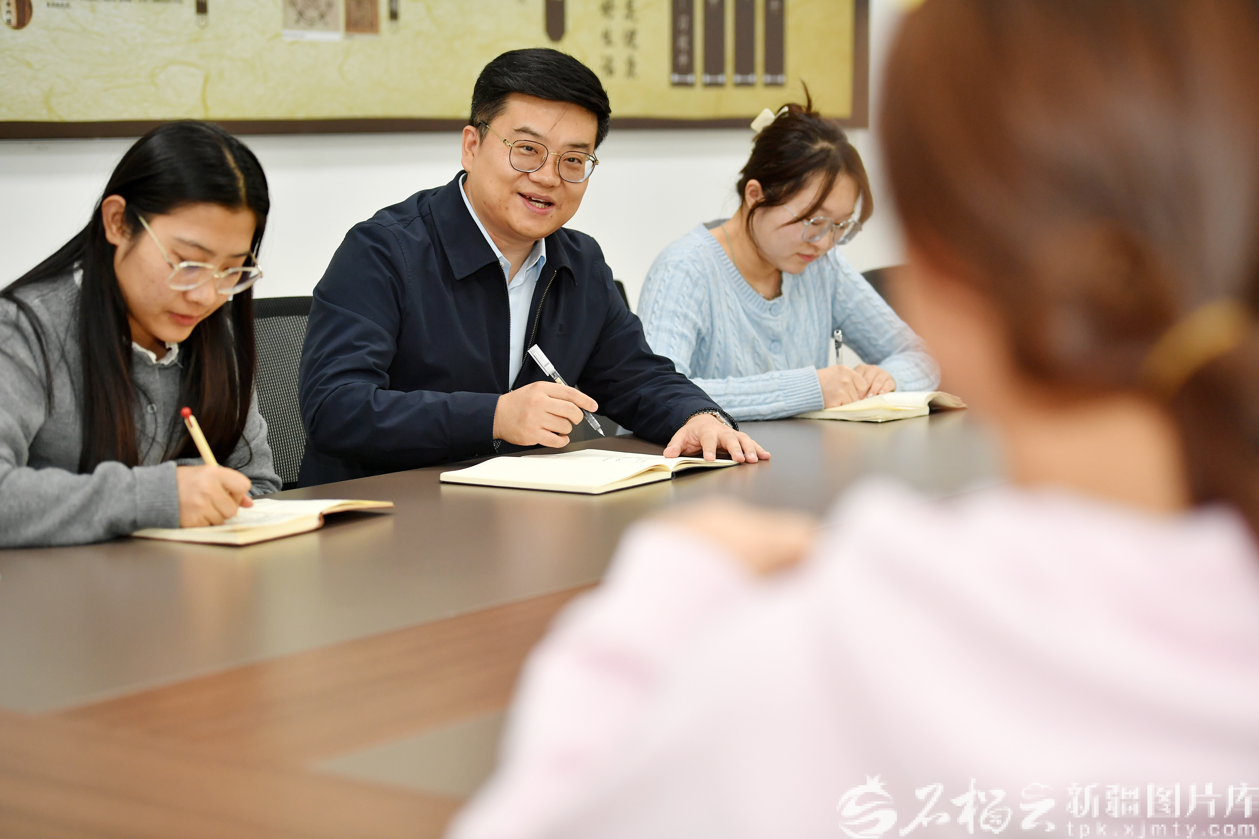1月21日,李柯翱在给研发人员讲述新疆中药民族药产业的发展历程。
