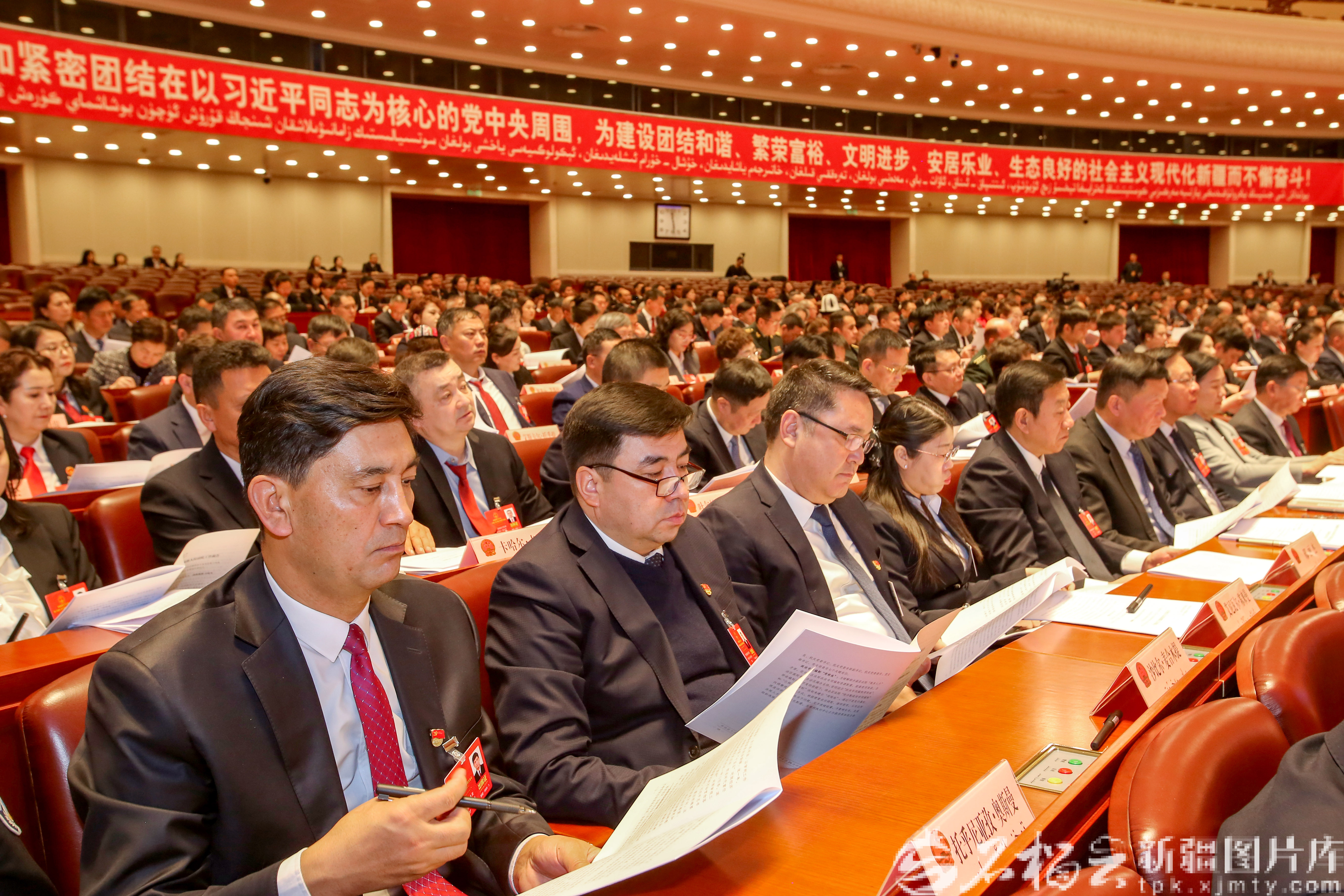 1月29日,自治区十四届人大四次会议举行第二次全体会议。图为代表们在阅读人大常委会工作报告。天山网-新疆日报记者 蔡增乐摄