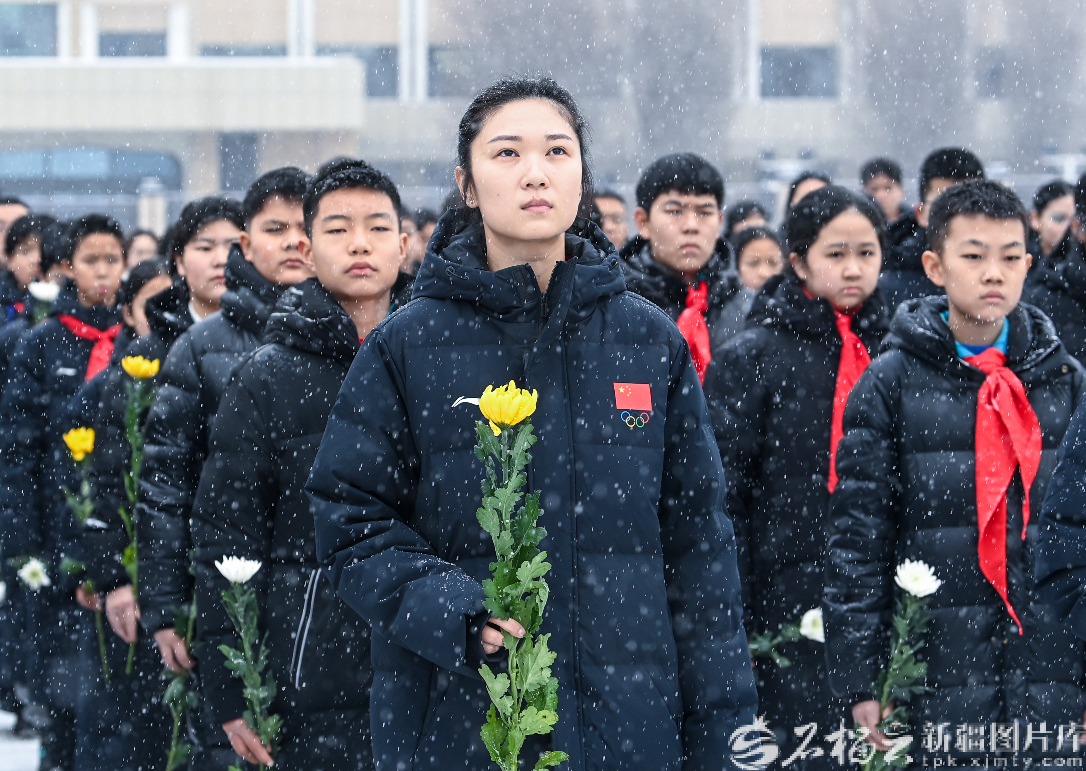 1月29日,来自全国34个代表团的优秀运动员代表、教练员,与本地少先队员共230余人齐聚中国人民解放军进军新疆纪念碑前,以敬献花篮的方式,缅怀革命先烈、传承红色基因。