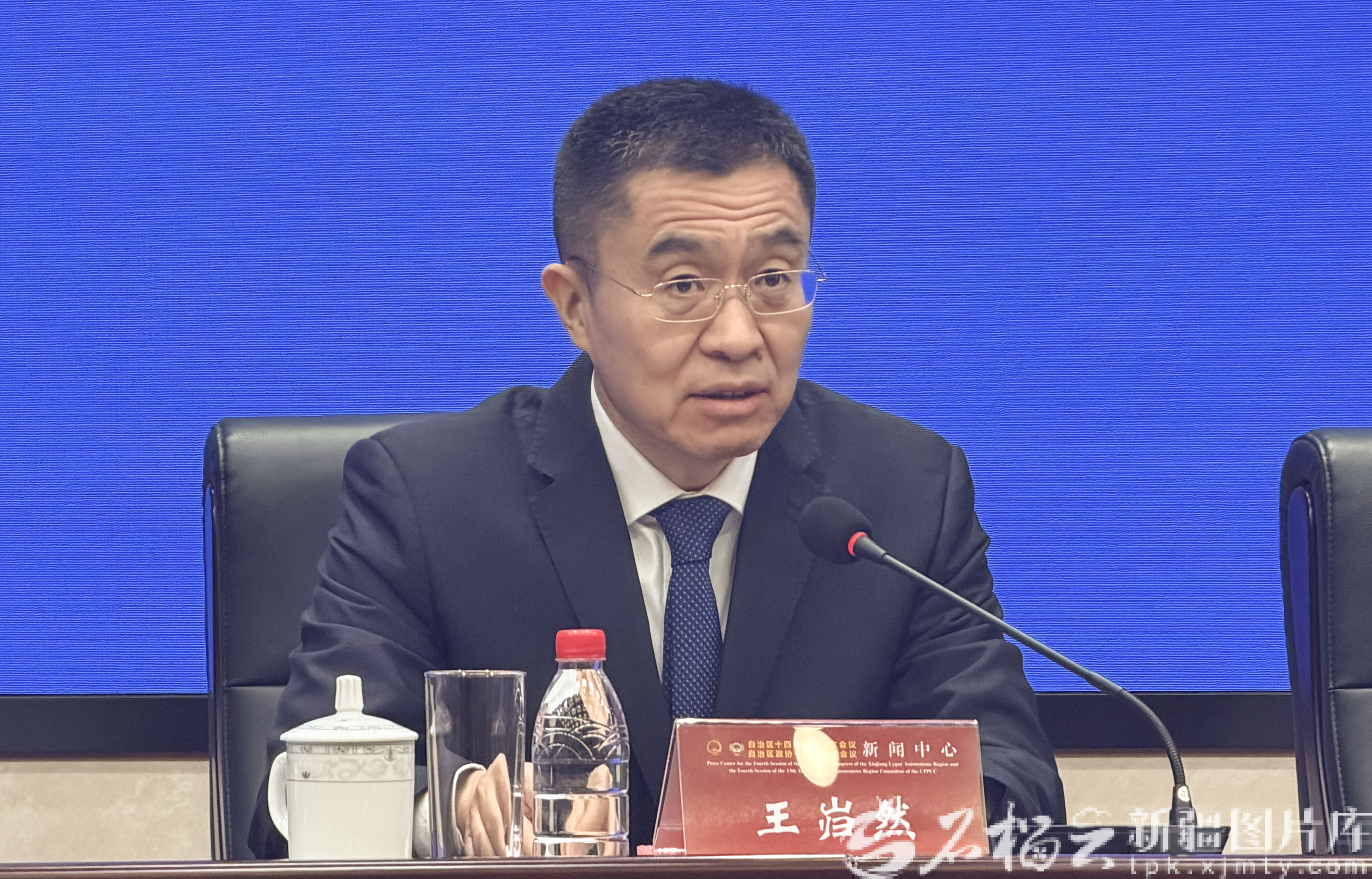 图为自治区人民政府新闻发言人,自治区人民政府秘书长王岿然作介绍。天山网-新疆日报记者 李瑞摄