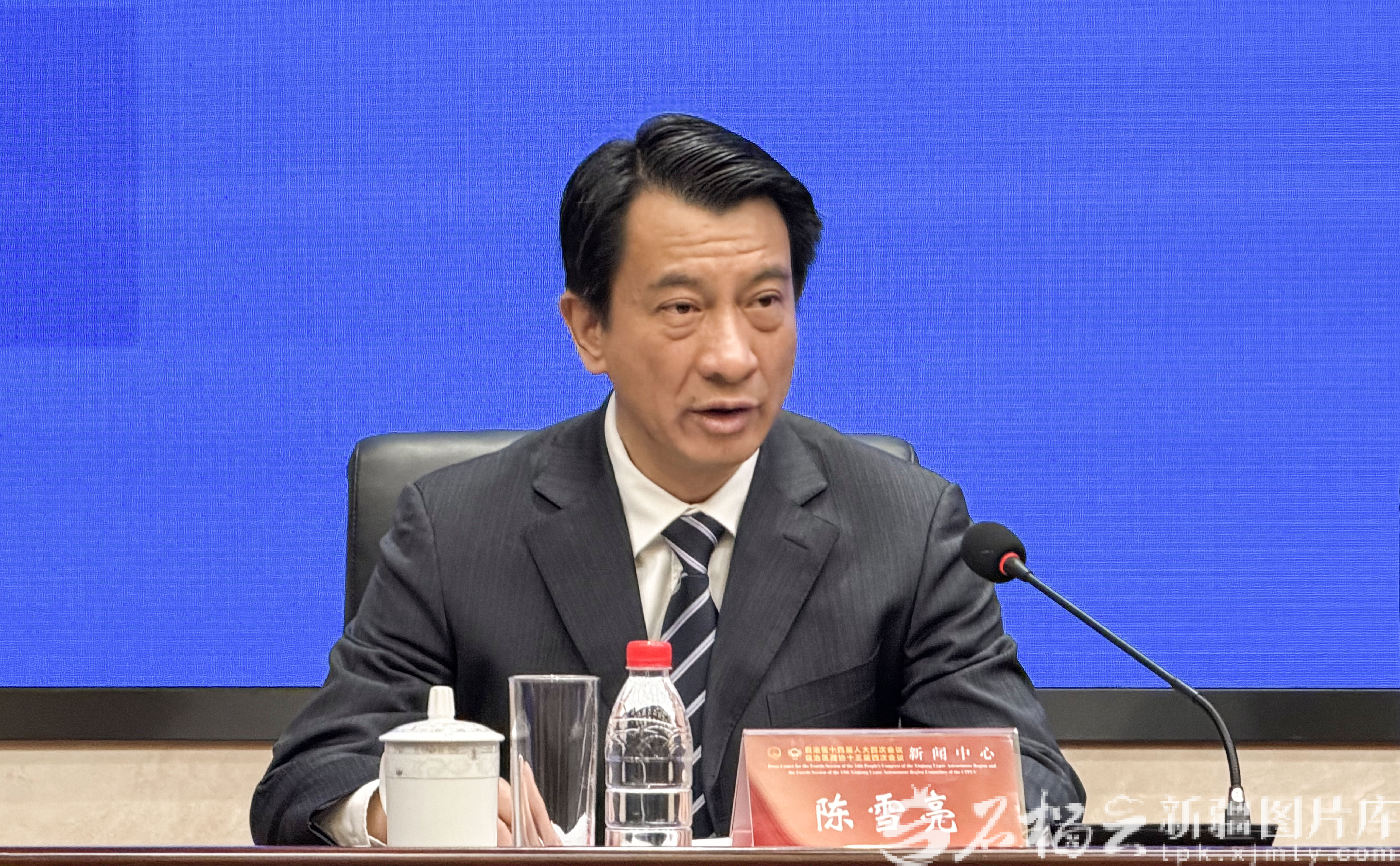 图为自治区党委宣传部副部长陈雪亮主持发布会。天山网-新疆日报记者 李瑞摄