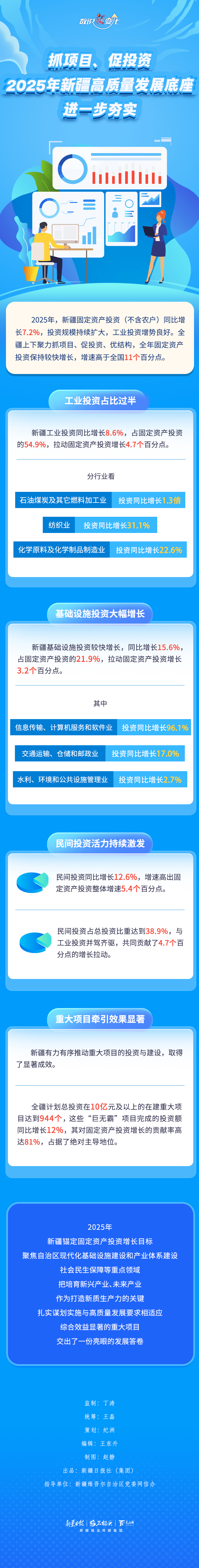 2025年,新疆固定资产投资保持较快增长,增速高于全国11个百分点。这些资金投在了哪些方面?取得了怎样的成绩?今天的《数说“新”变化》为你一一解答。