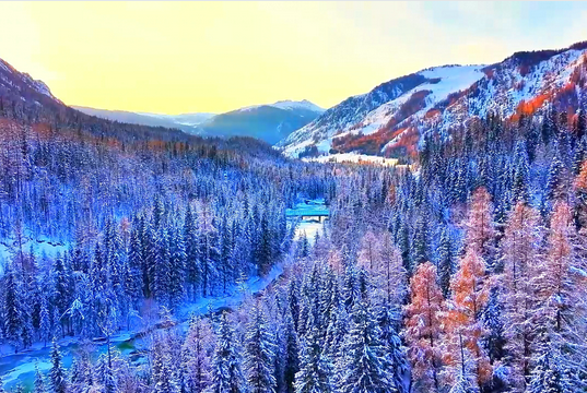 阿禾公路的冬日“雪色彩林梦”