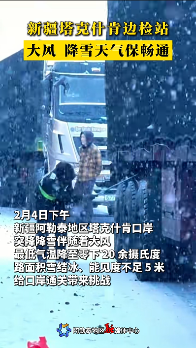 新疆塔克什肯边检站 大风 降雪天气保畅通